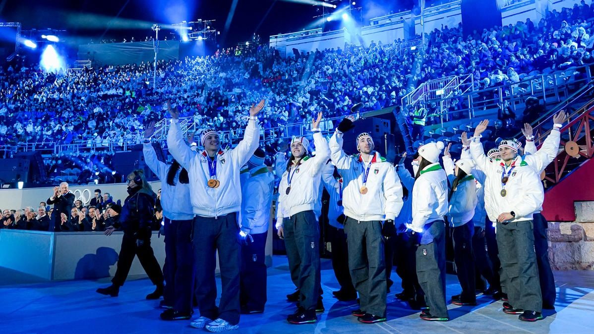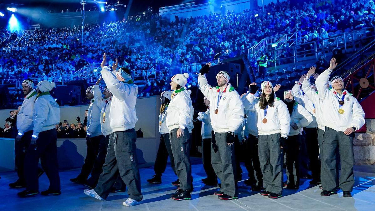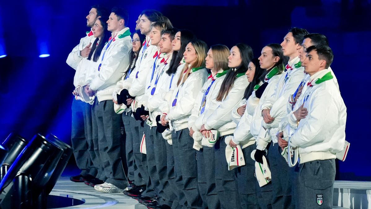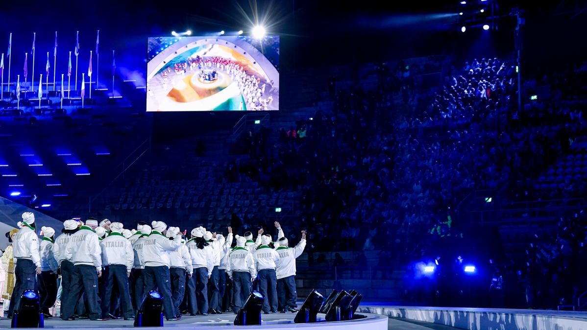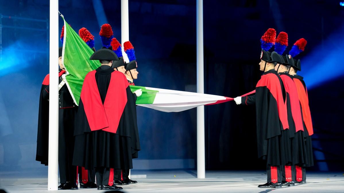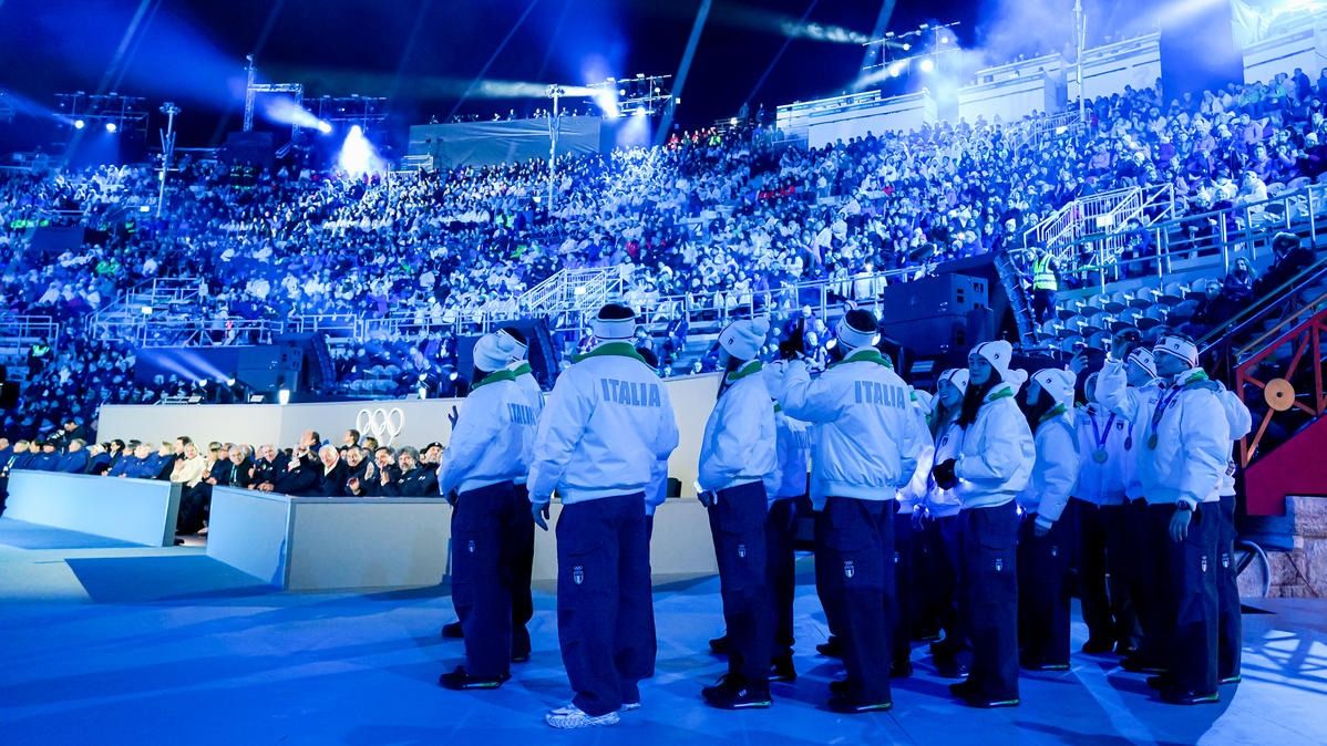 Closing ceremony: Vittozzi and Ghiotto carry the flag for a record-breaking team