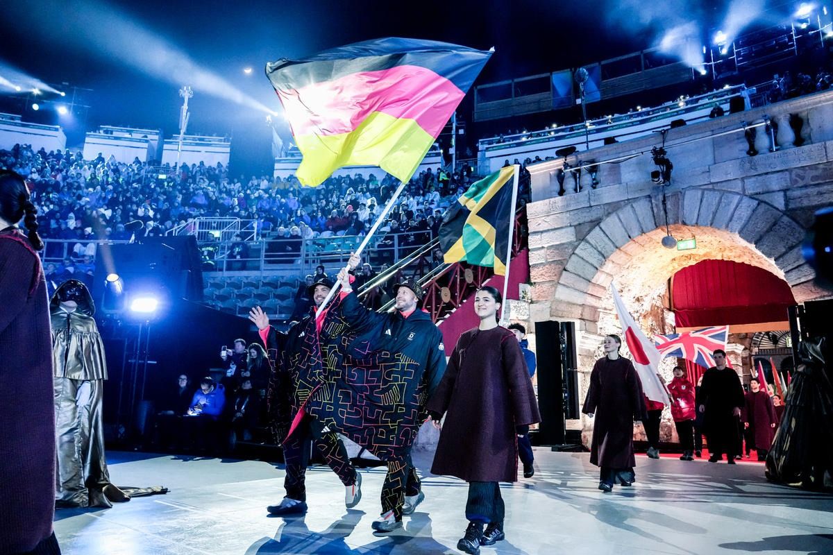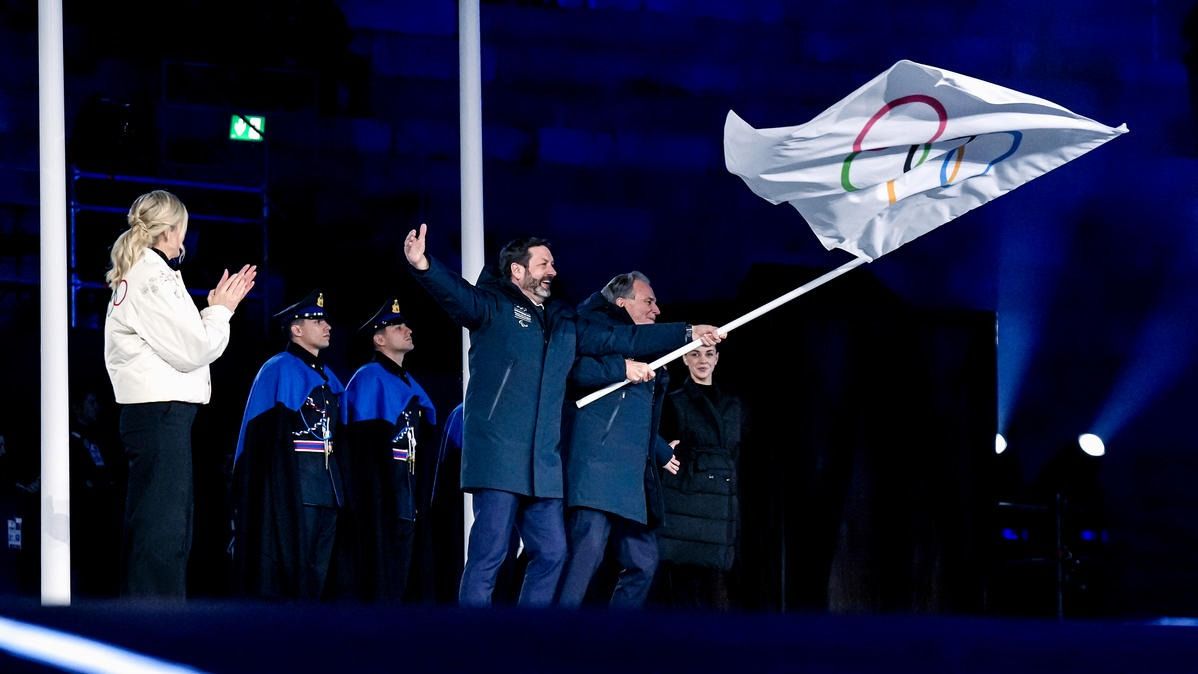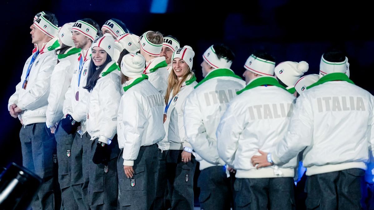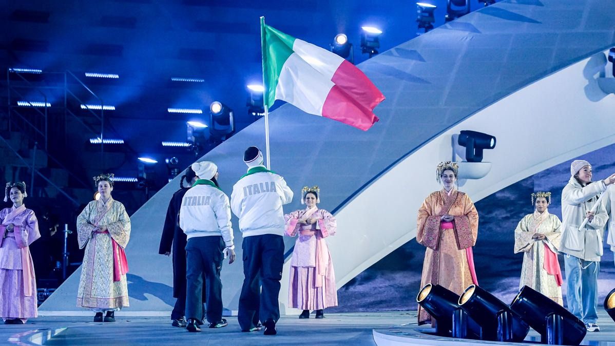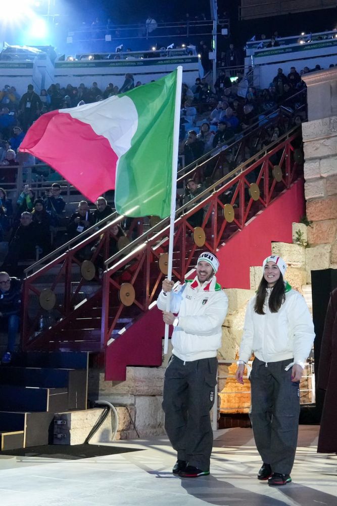 Closing ceremony: Vittozzi and Ghiotto carry the flag for a record-breaking team