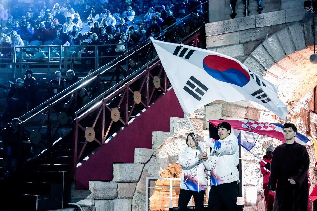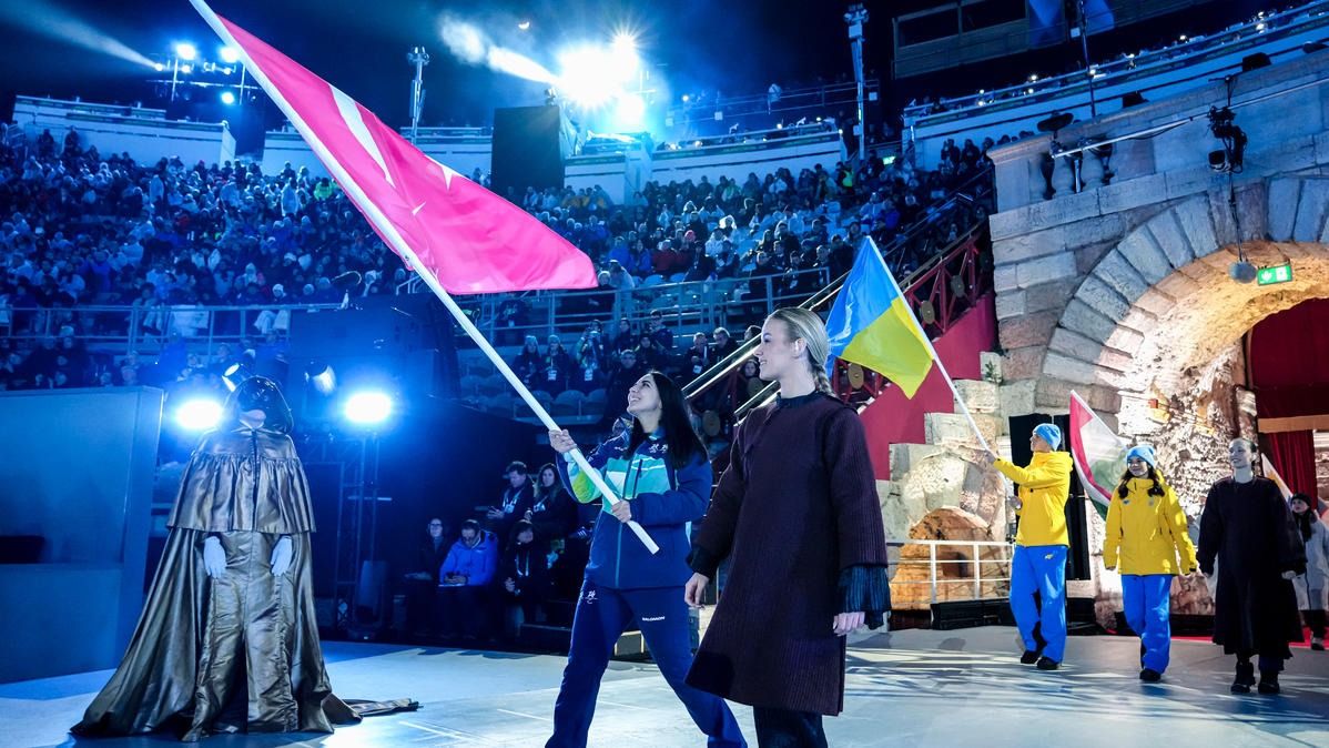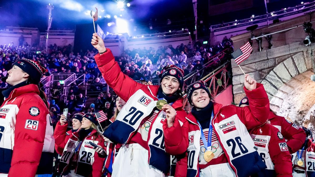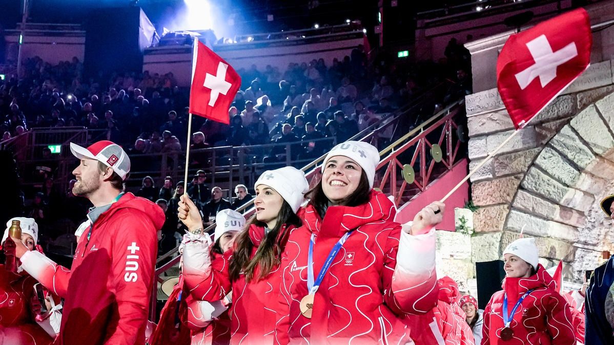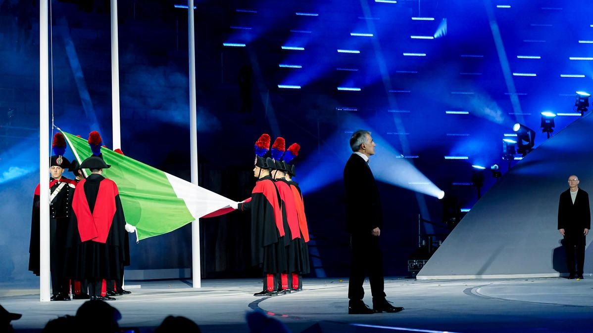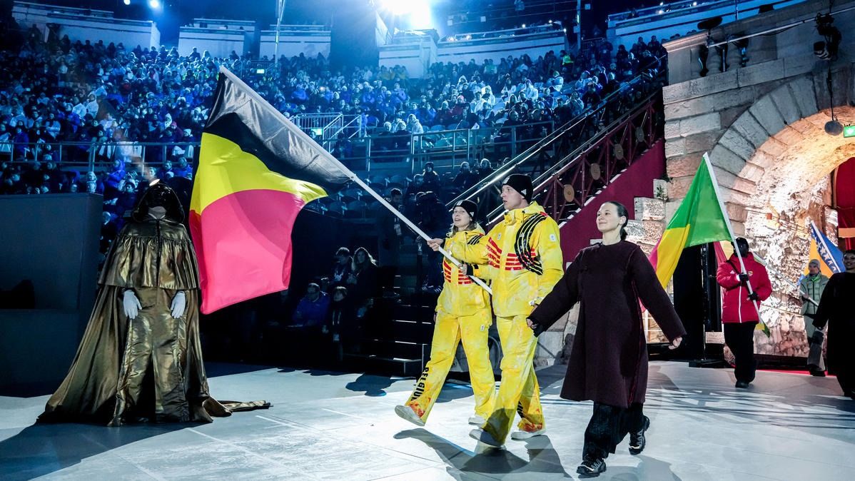 Closing ceremony: Vittozzi and Ghiotto carry the flag for a record-breaking team