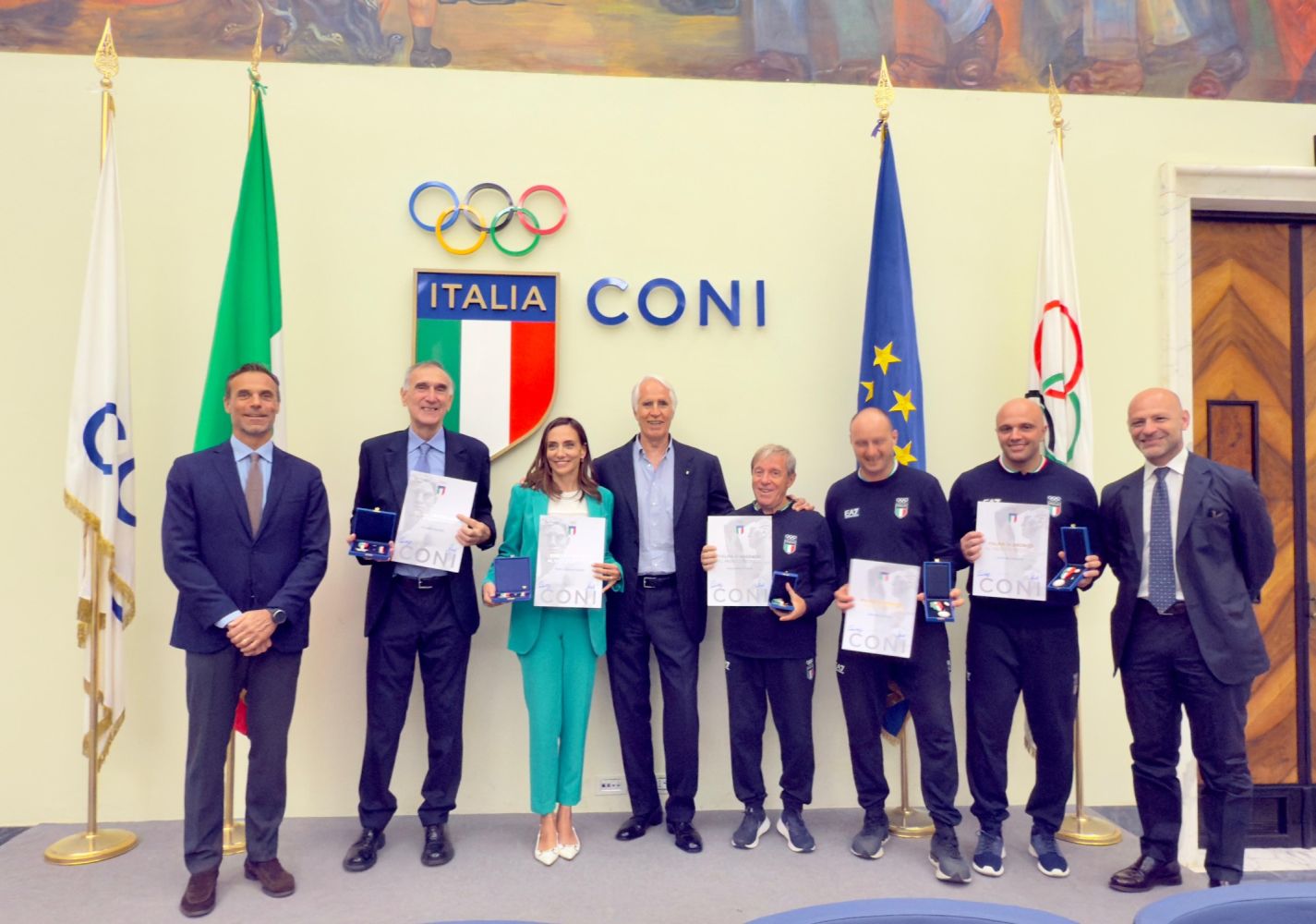 Il Presidente Malagò e il Segretario Mornati consegnano le onorificenze ai rappresentanti dell'Istituto di Medicina e Scienza dello Sport CONI