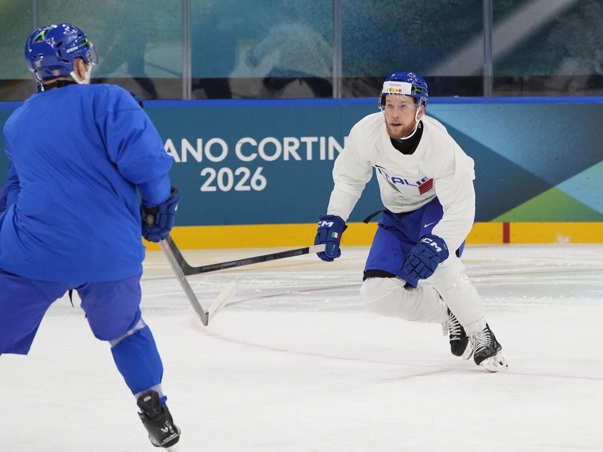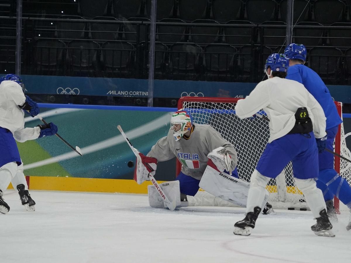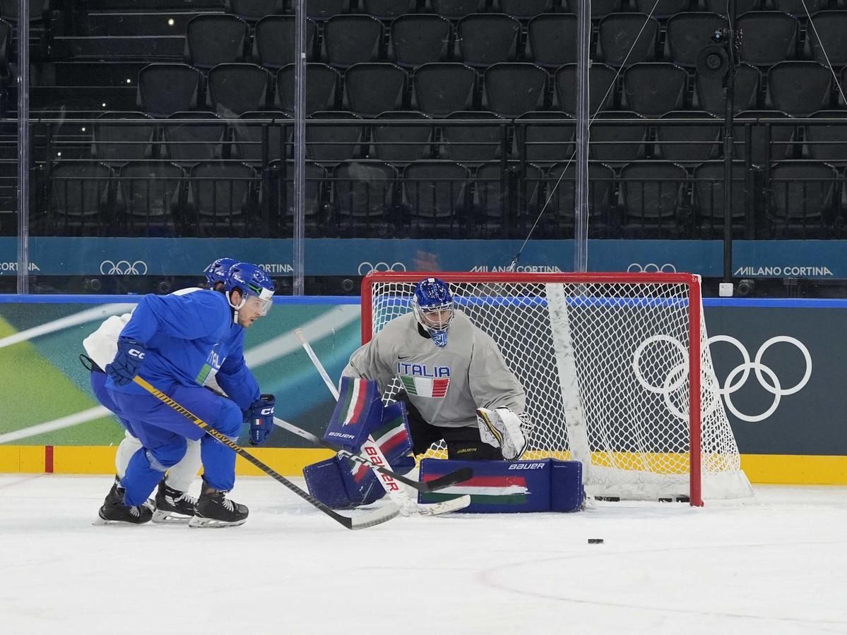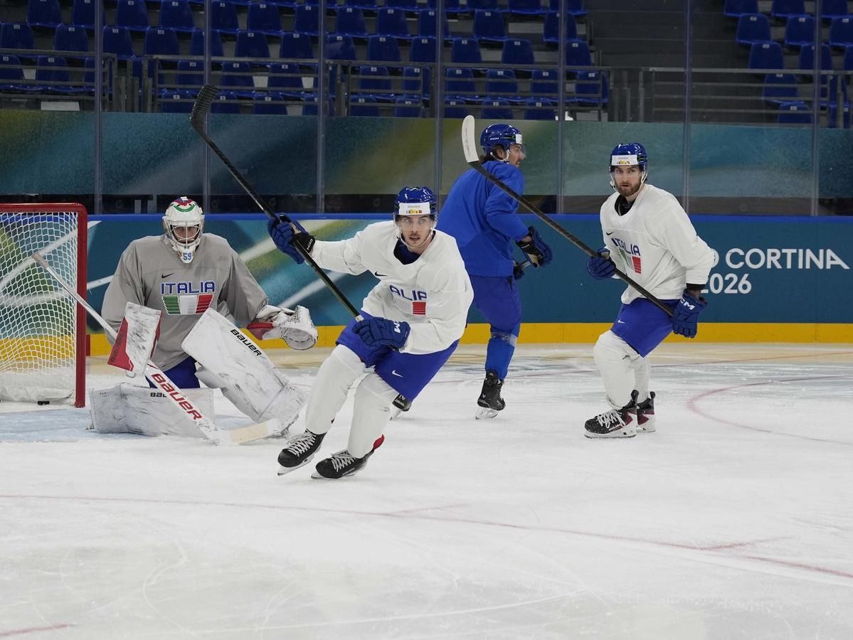 Milano: l'allenamento della Nazionale maschile di hockey su ghiaccio