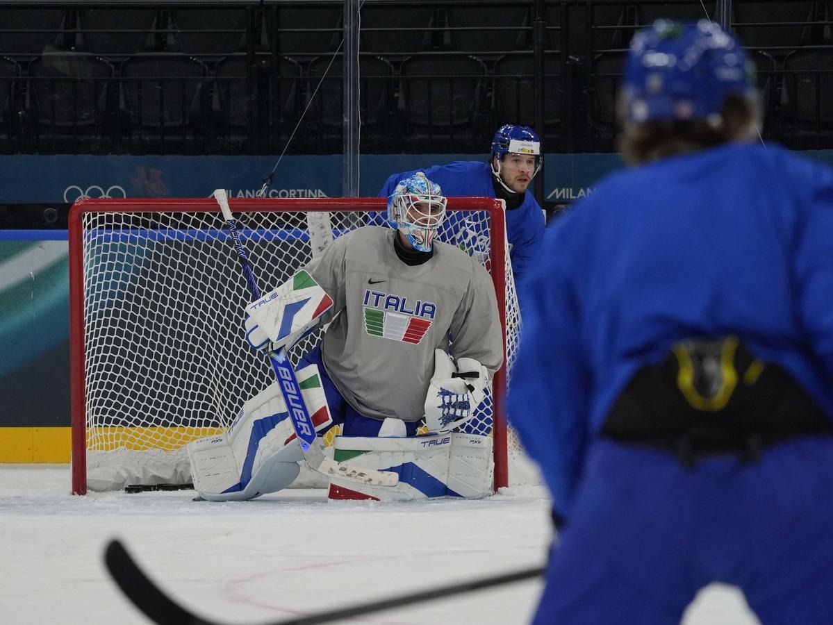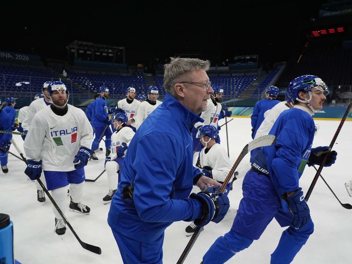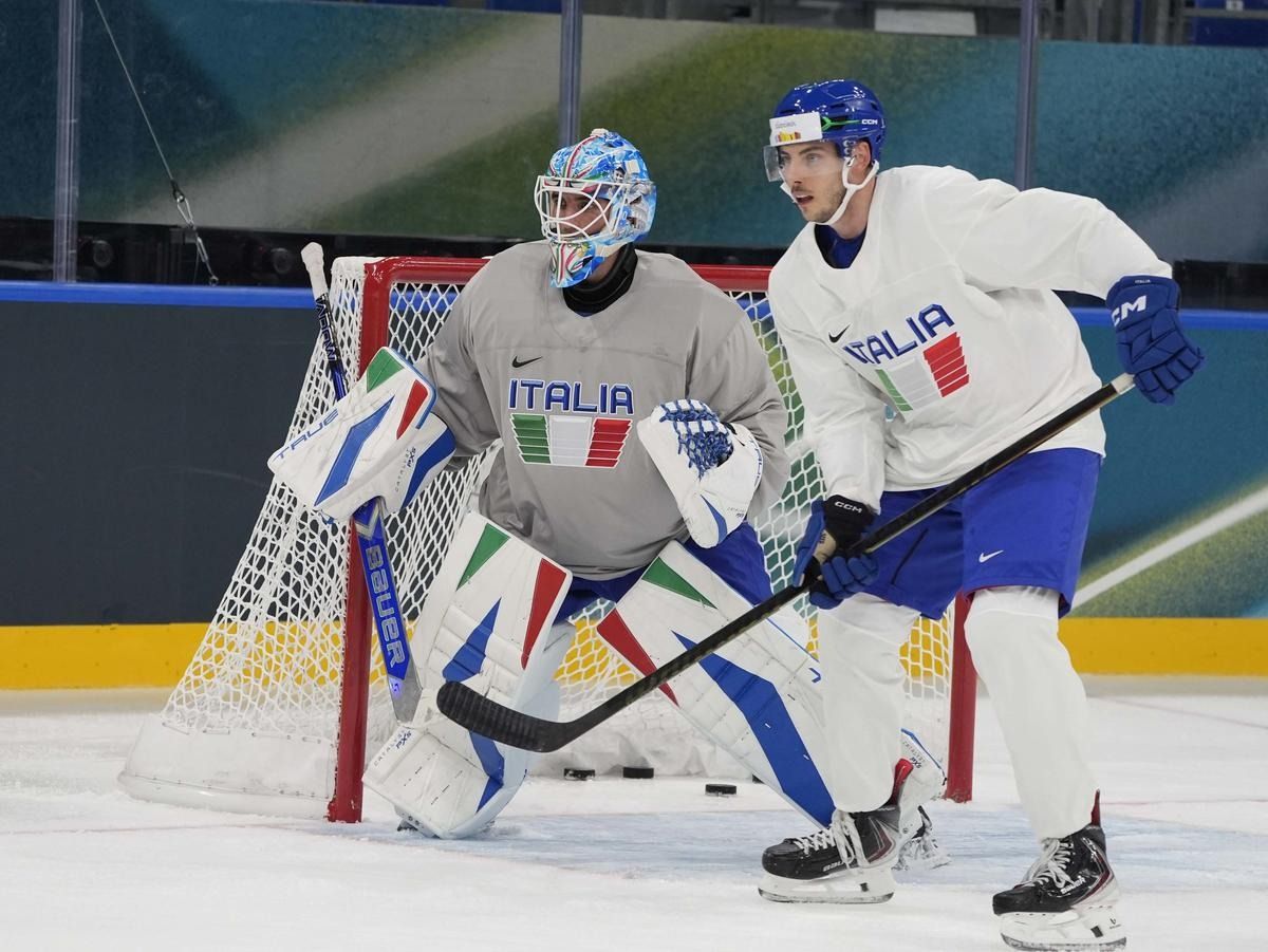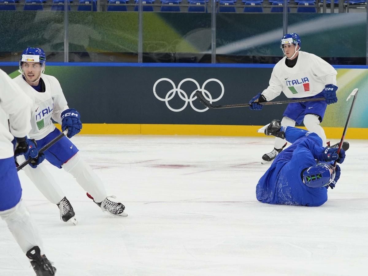 Milano: l'allenamento della Nazionale maschile di hockey su ghiaccio
