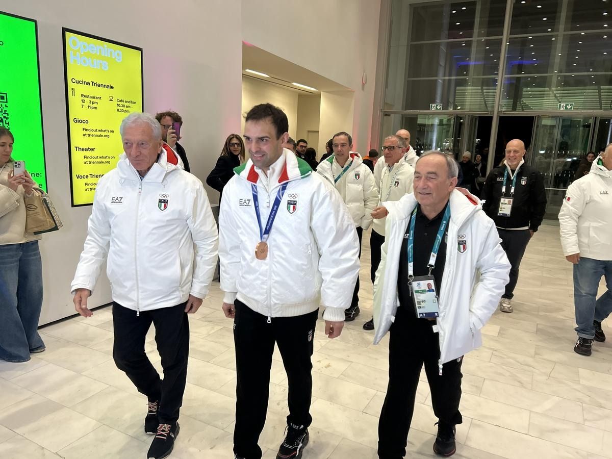 Riccardo Viola consegna il premio Coni Roma 2010 al senatore a vita nel suo studio di palazzo Giustiniani, in occasione del cinquantenario dei Giochi di Roma 1960 di cui fu presidente del Comitato Organizzatore