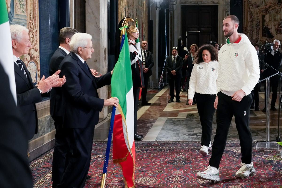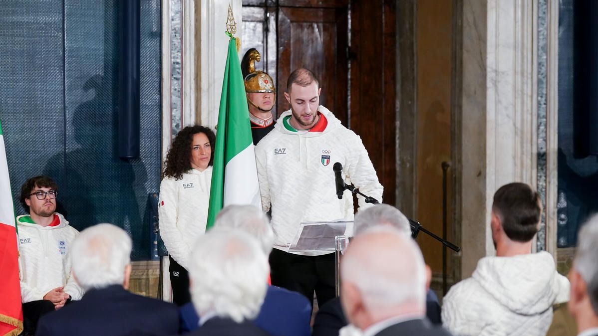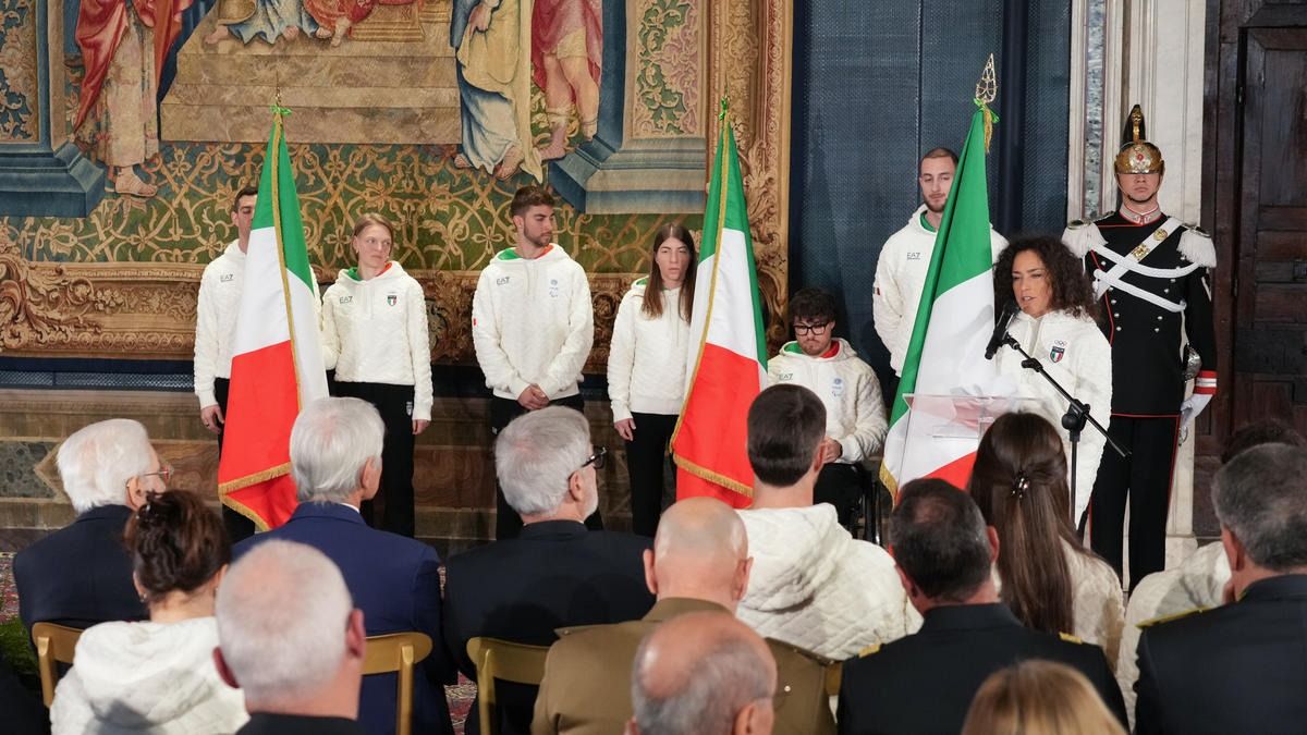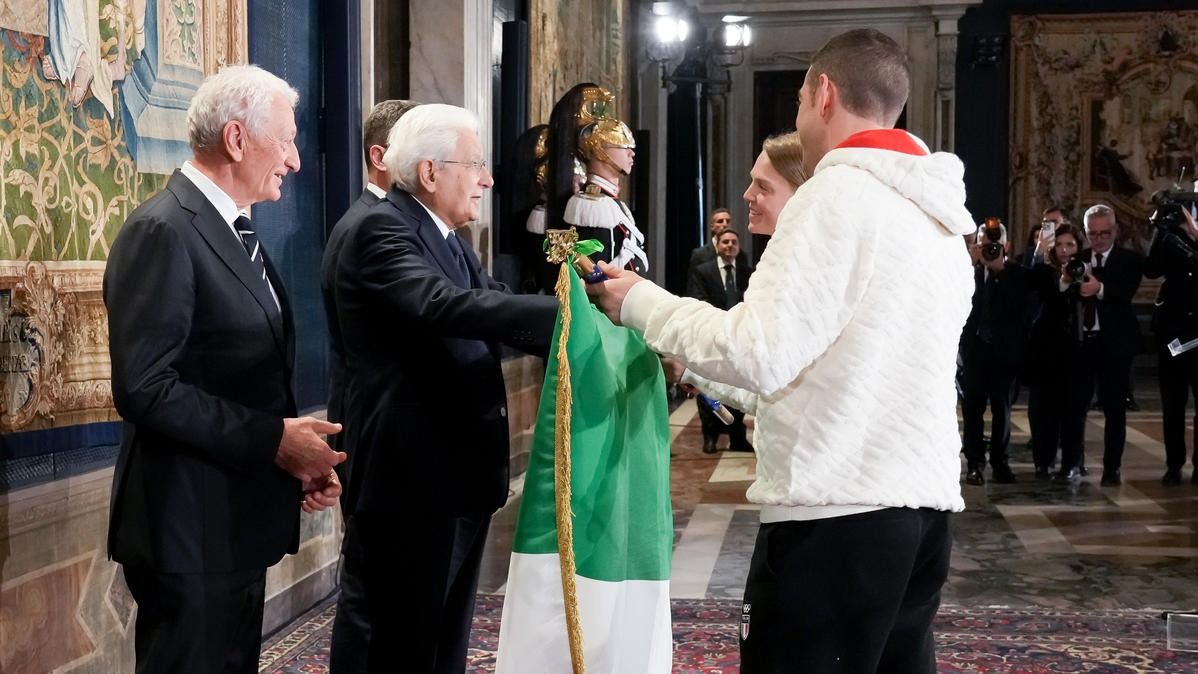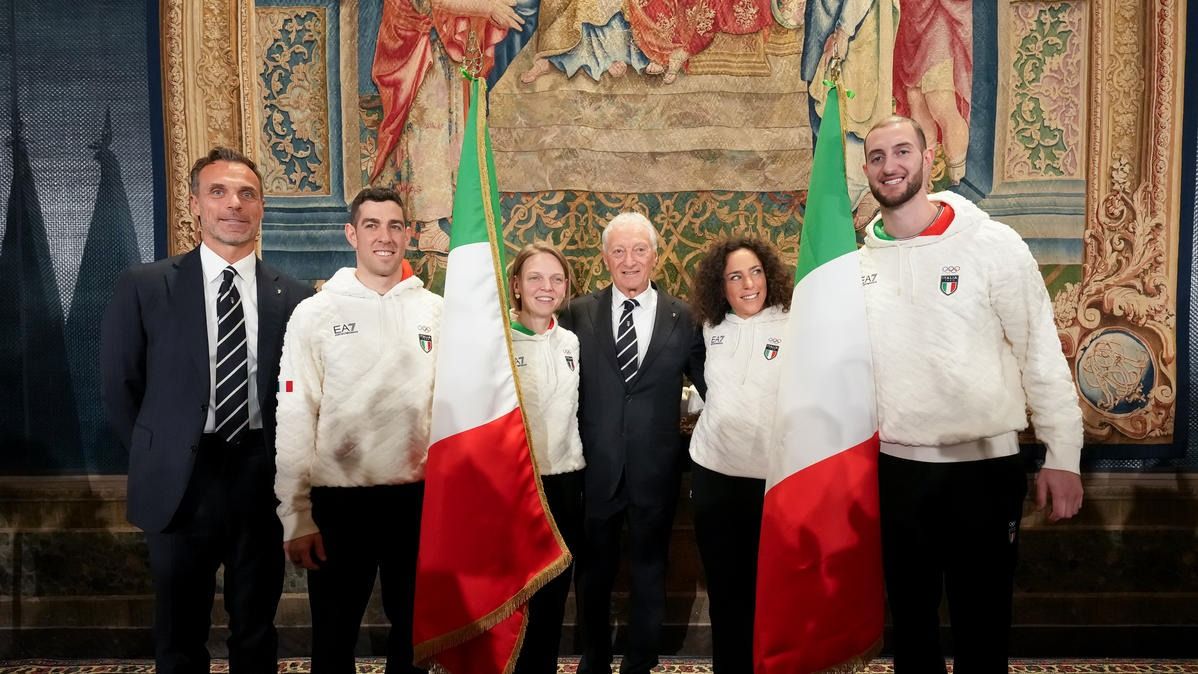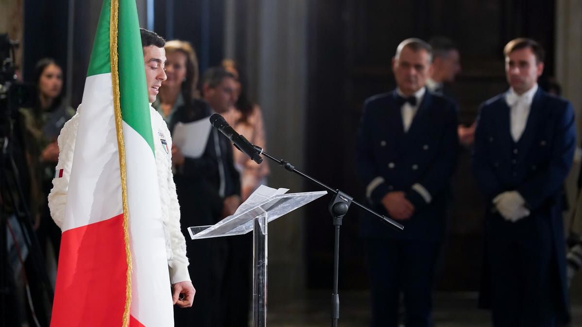 Il Presidente della Repubblica Mattarella consegna il tricolore ai portabandiera di Milano Cortina 2026