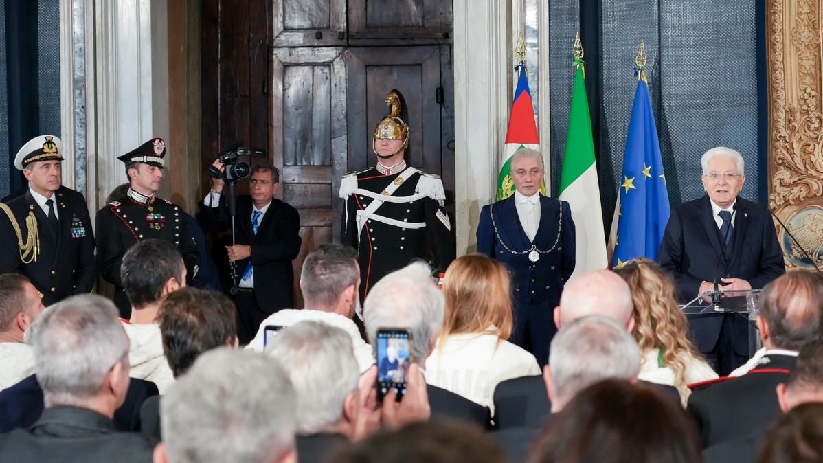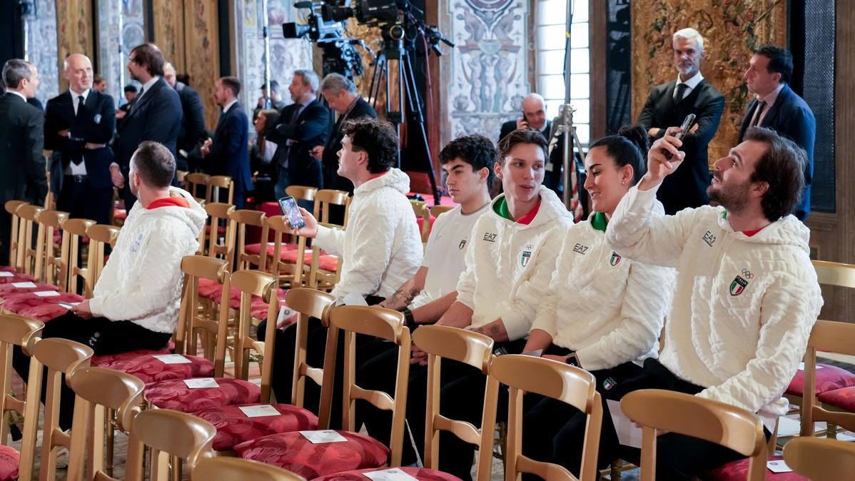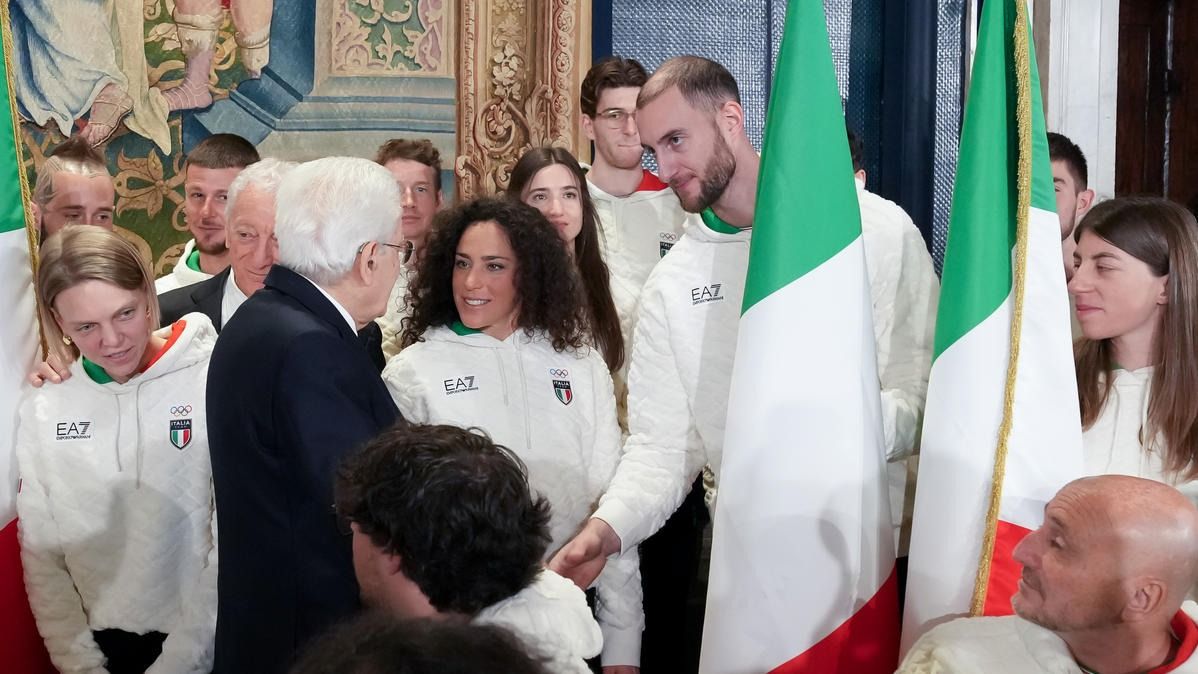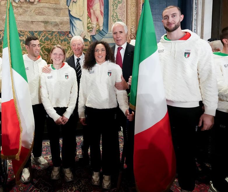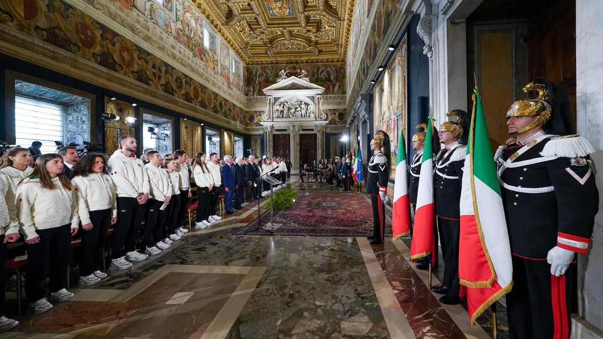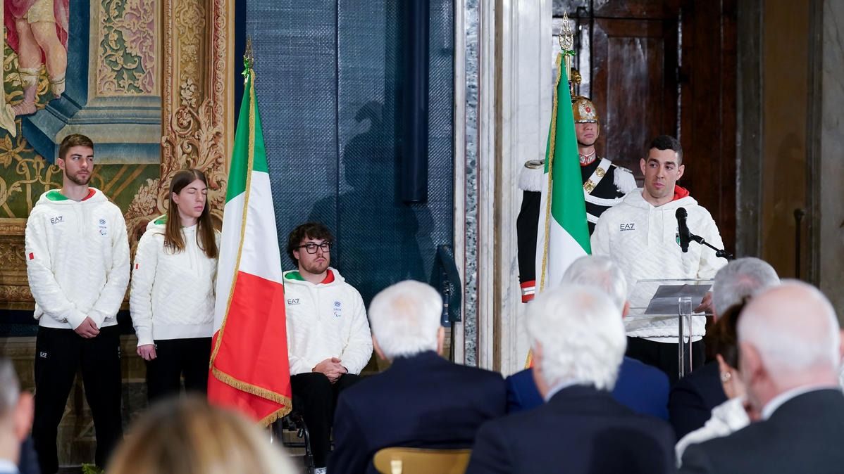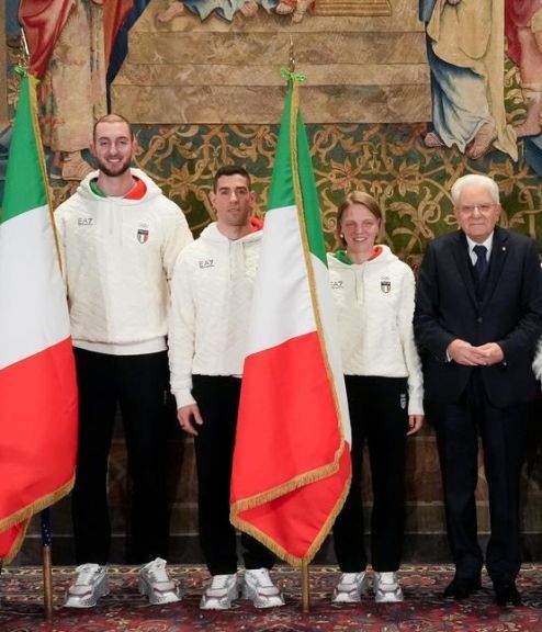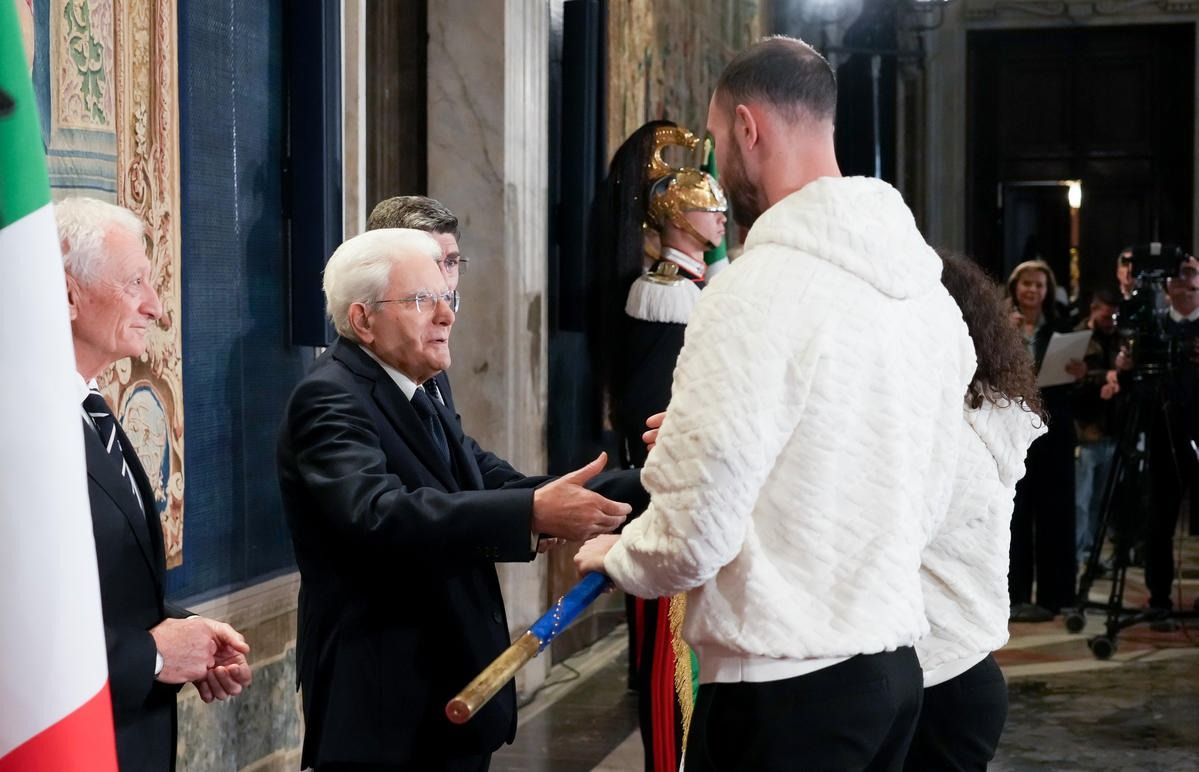 Il Presidente della Repubblica Mattarella consegna il tricolore ai portabandiera di Milano Cortina 2026