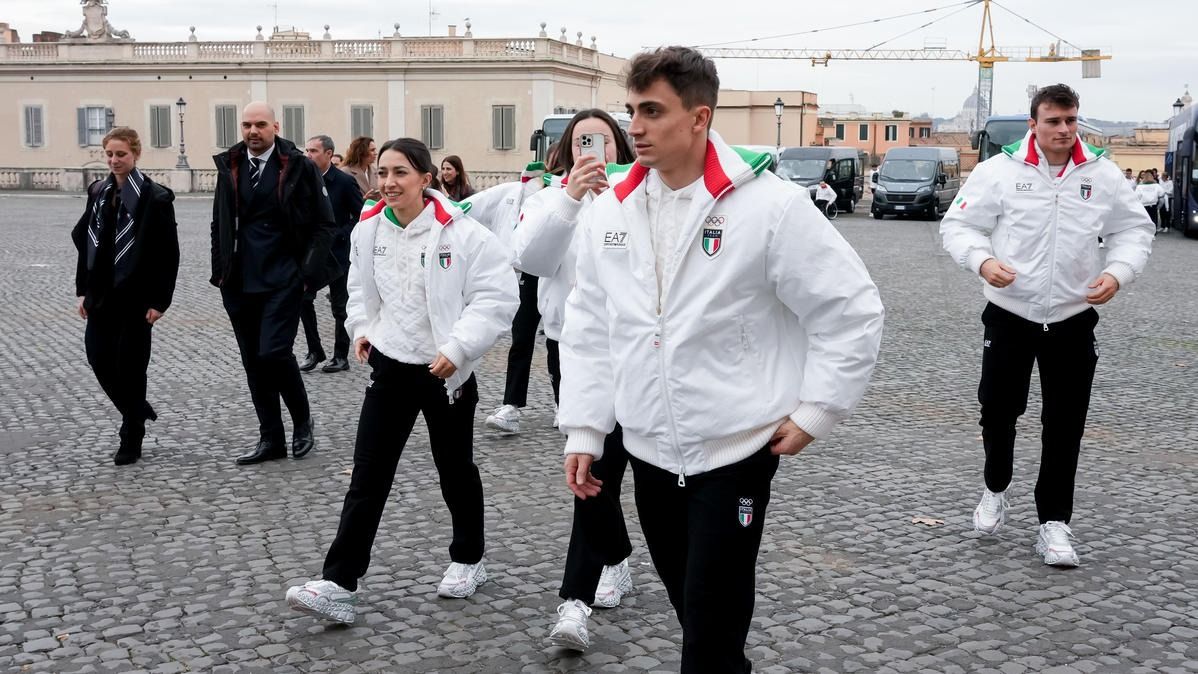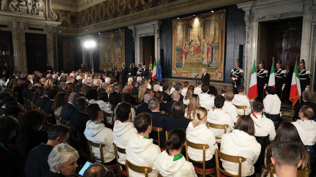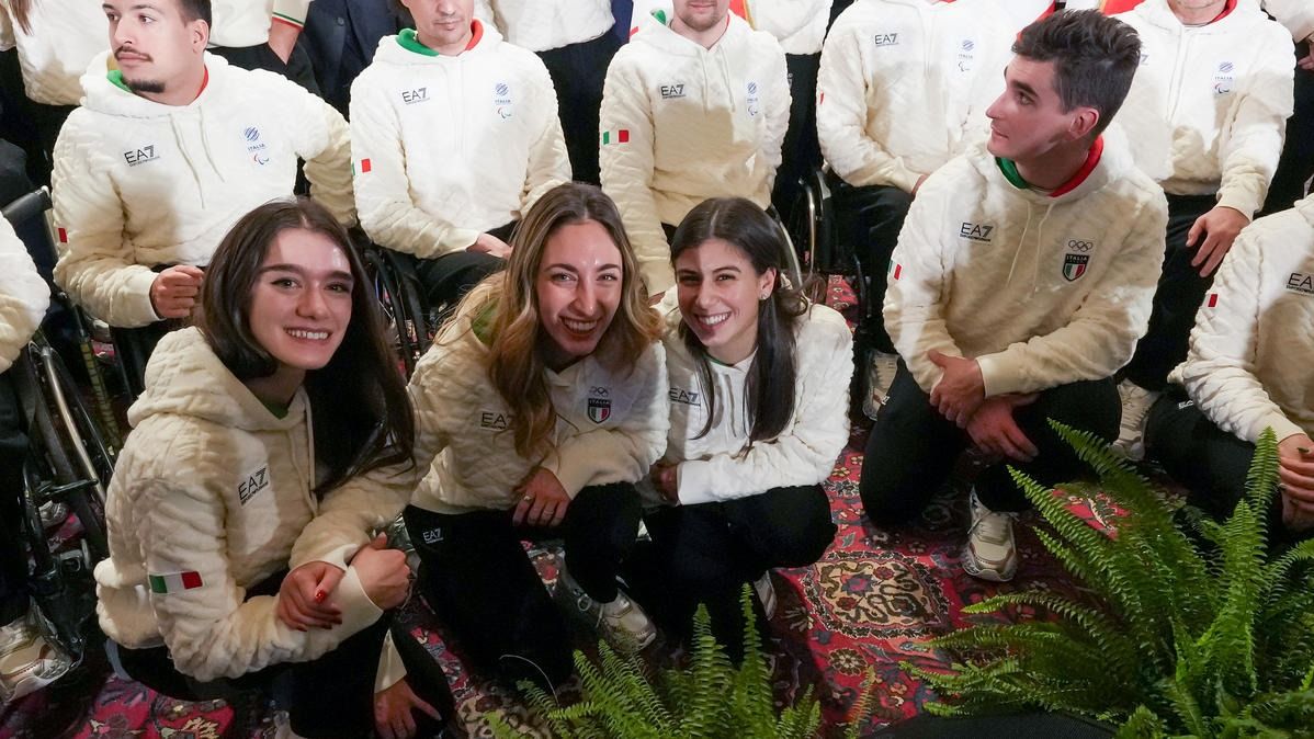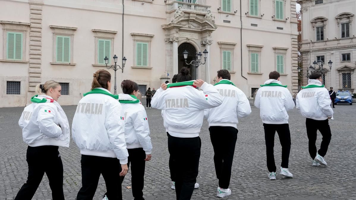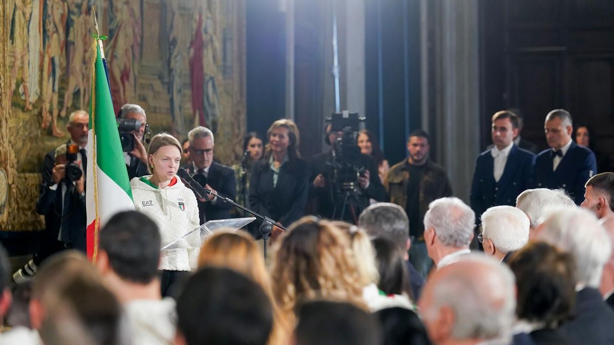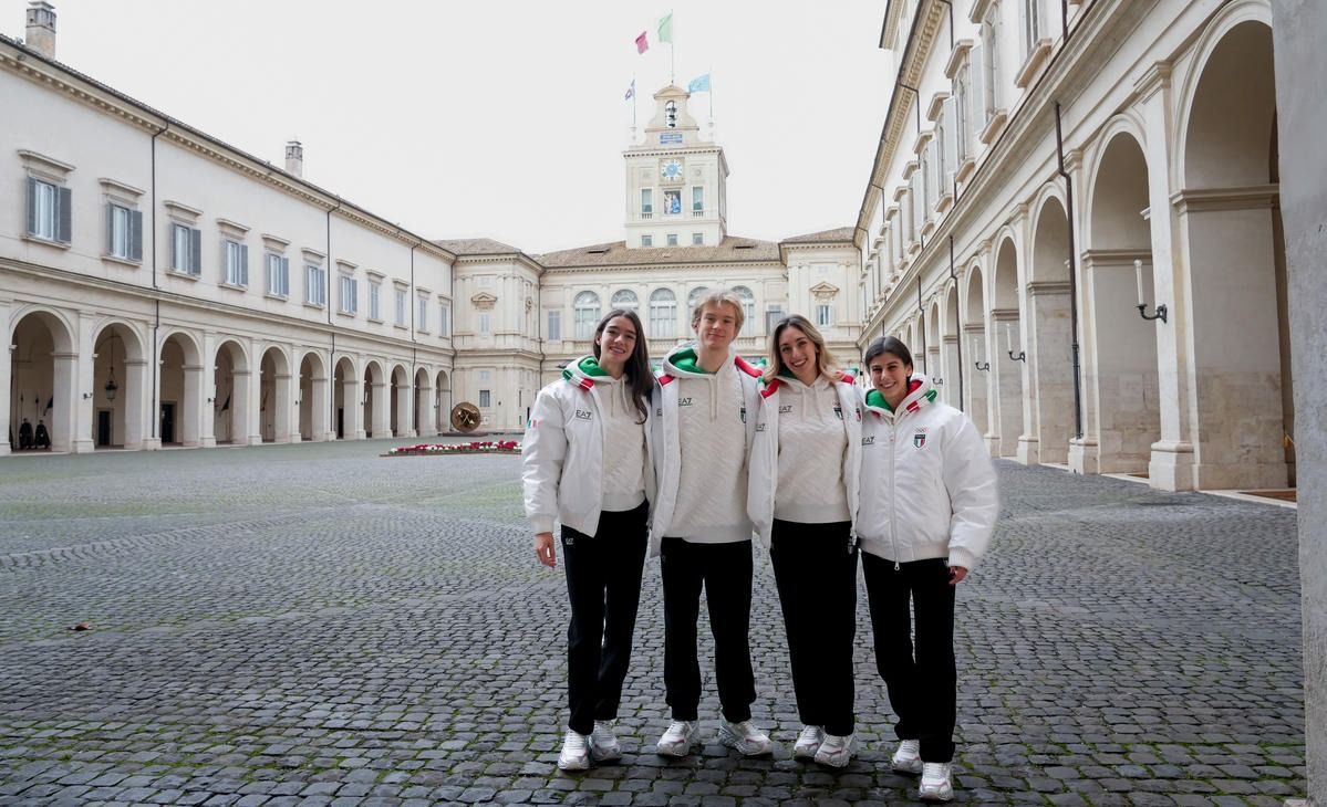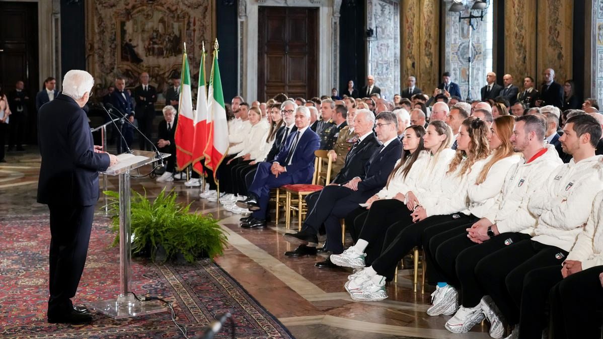 Il Presidente della Repubblica Mattarella consegna il tricolore ai portabandiera di Milano Cortina 2026