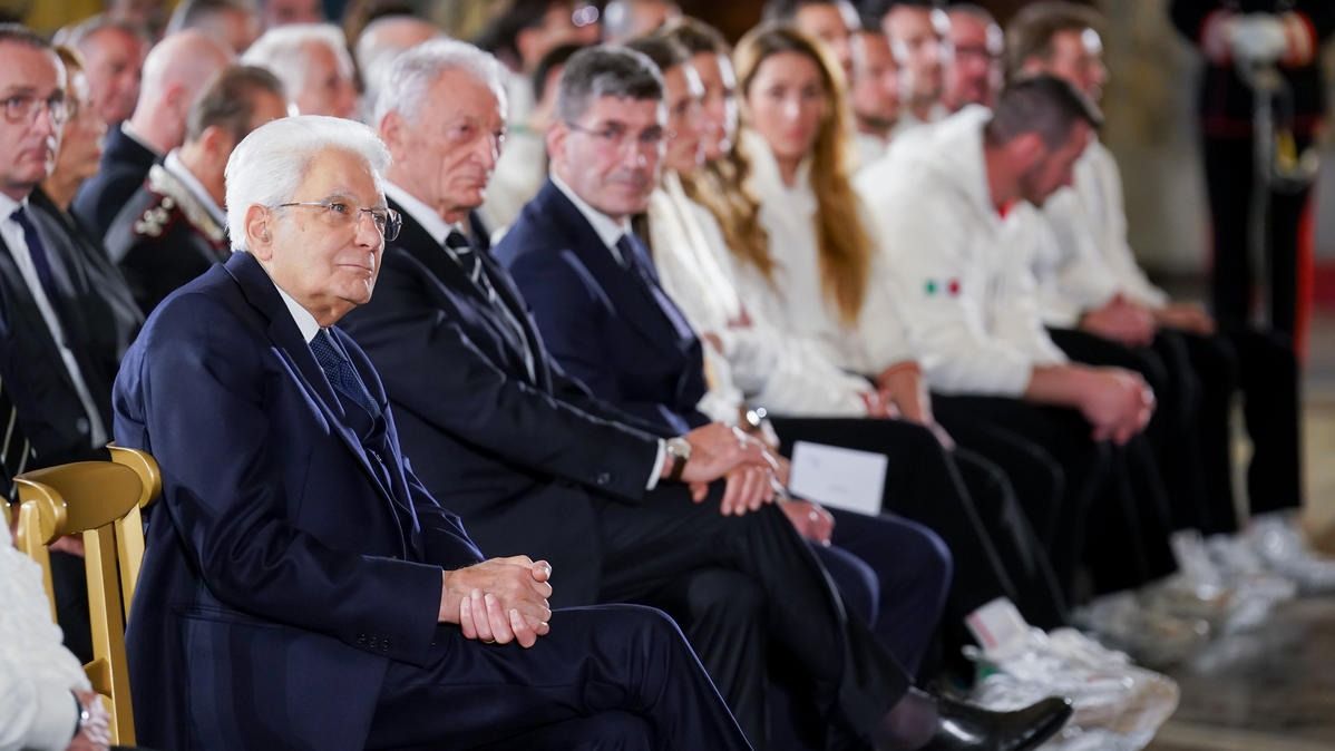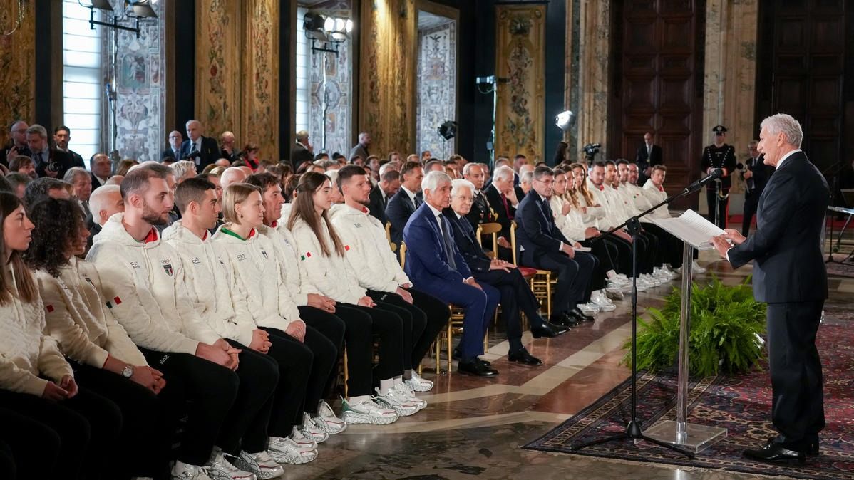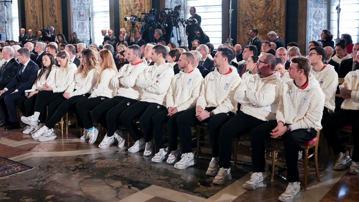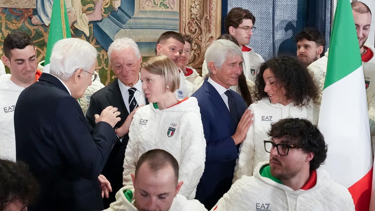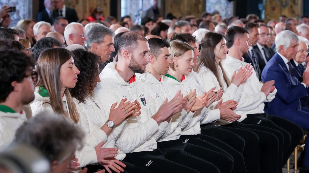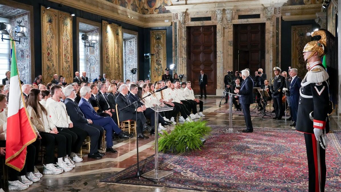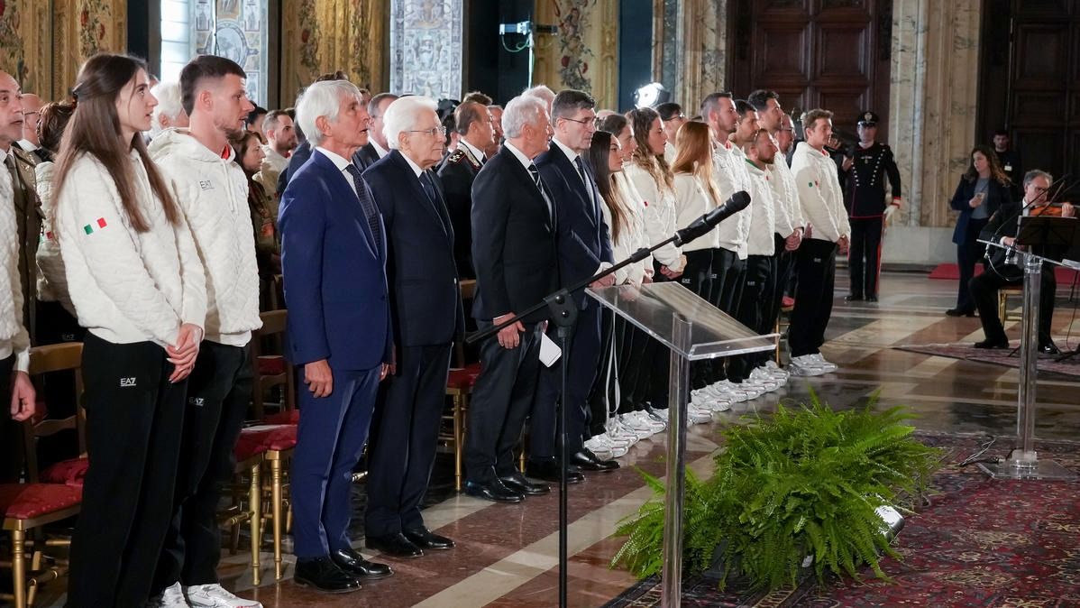 Il Presidente della Repubblica Mattarella consegna il tricolore ai portabandiera di Milano Cortina 2026