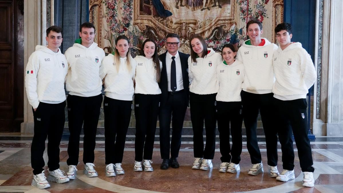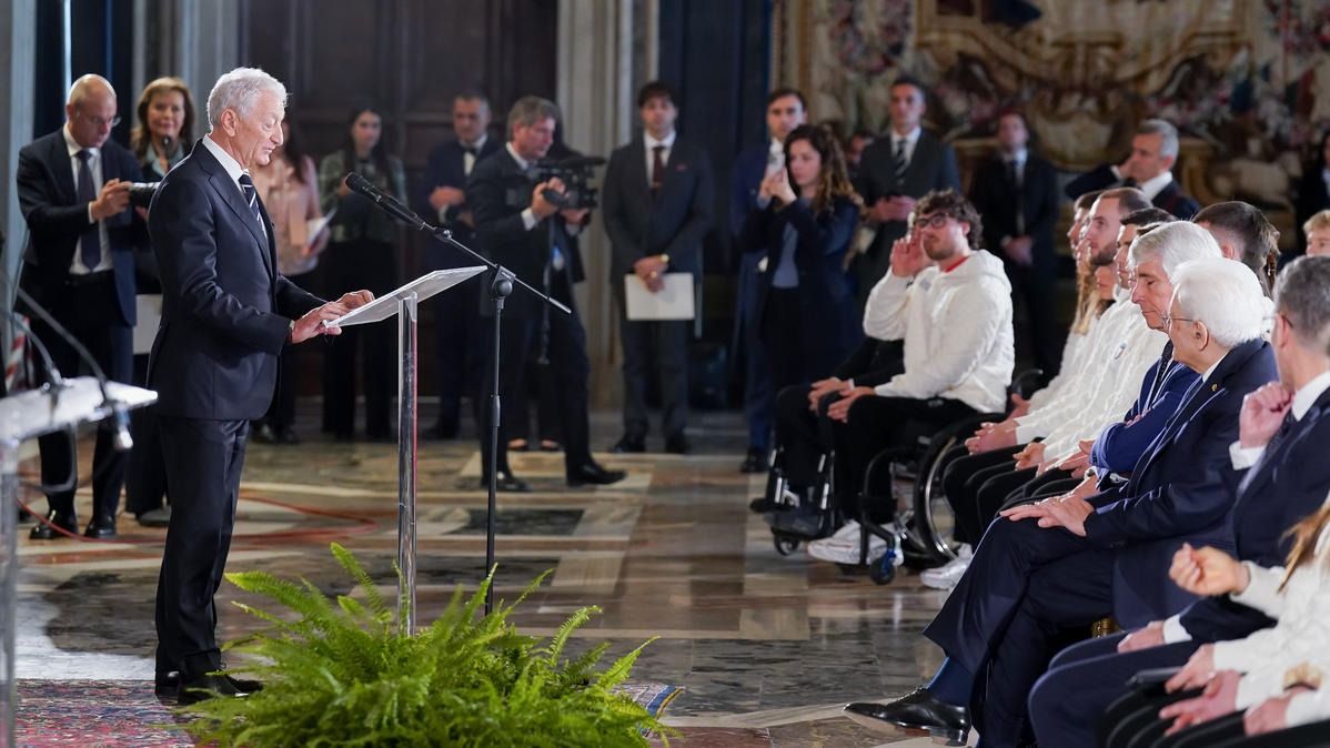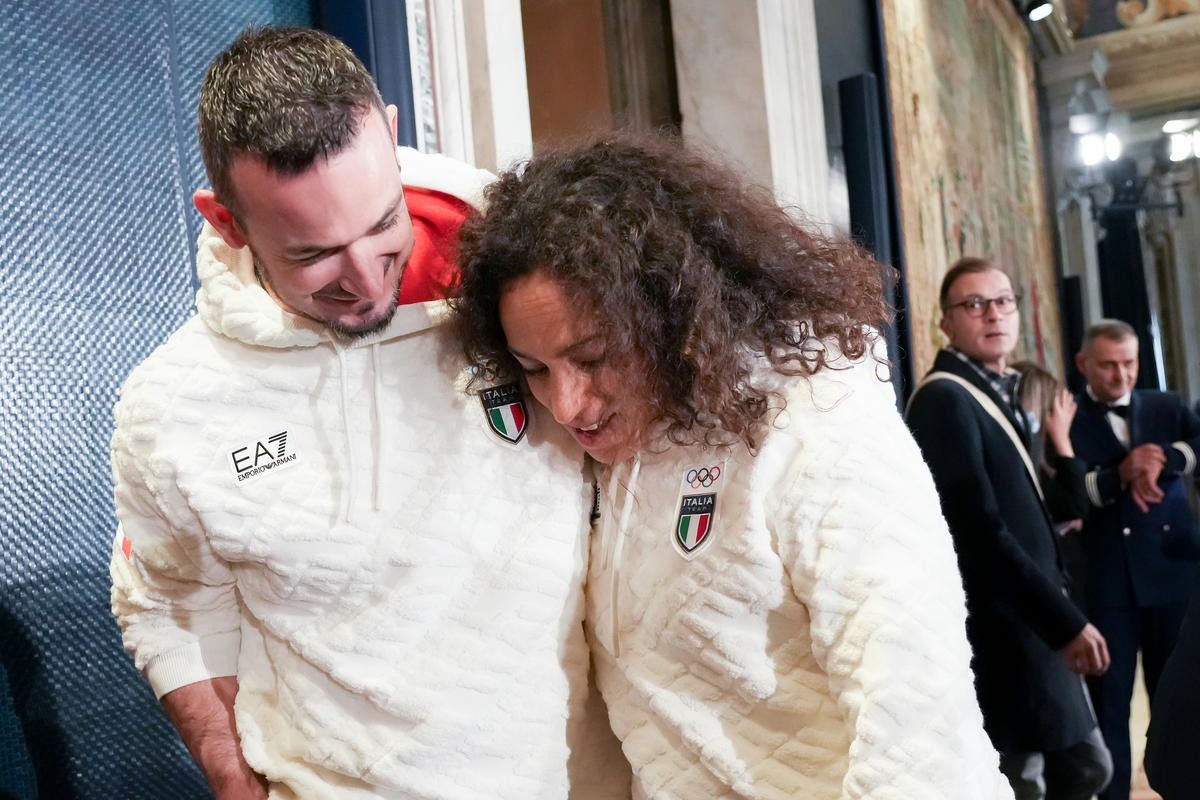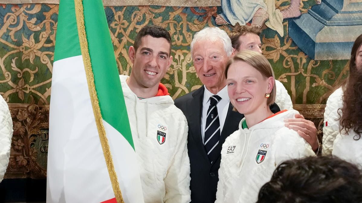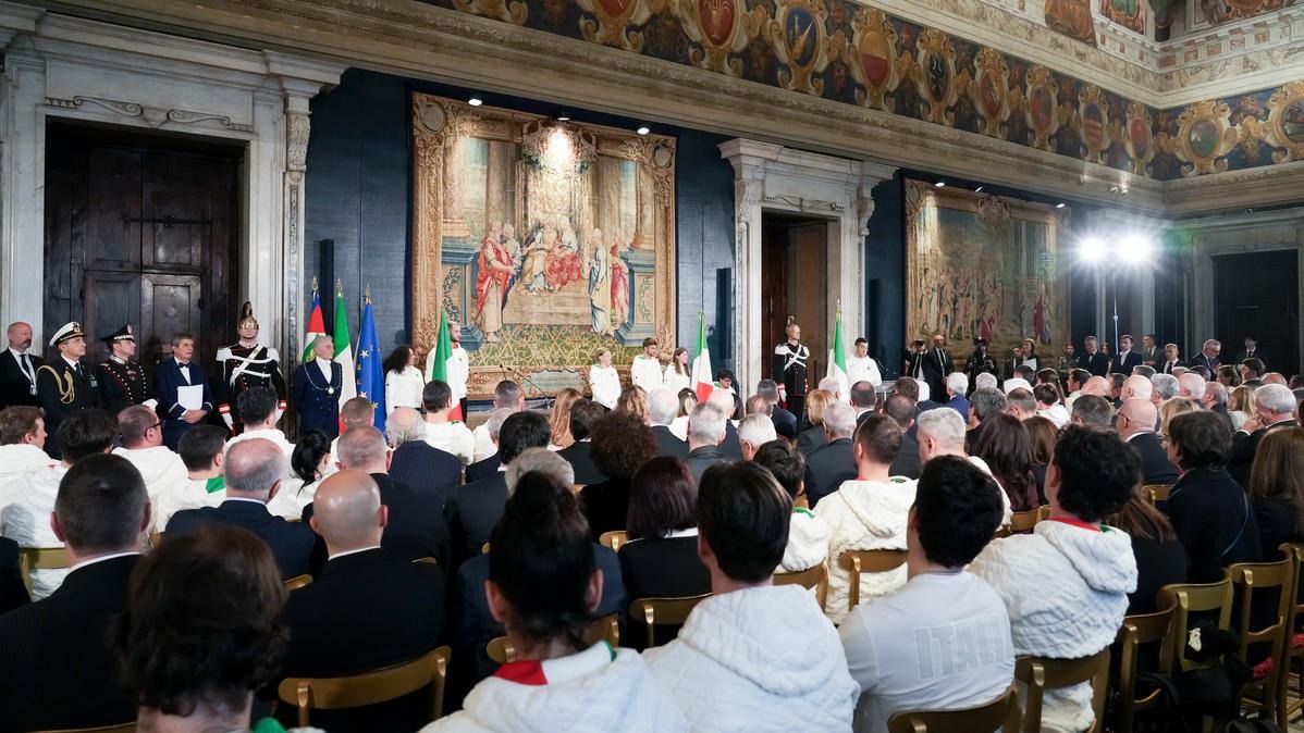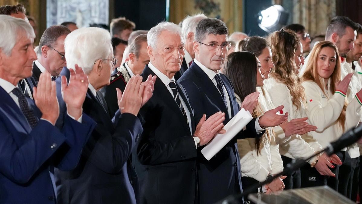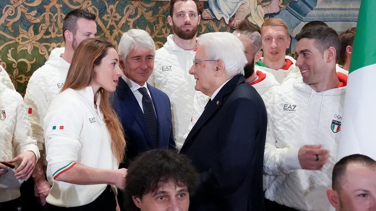 Il Presidente della Repubblica Mattarella consegna il tricolore ai portabandiera di Milano Cortina 2026