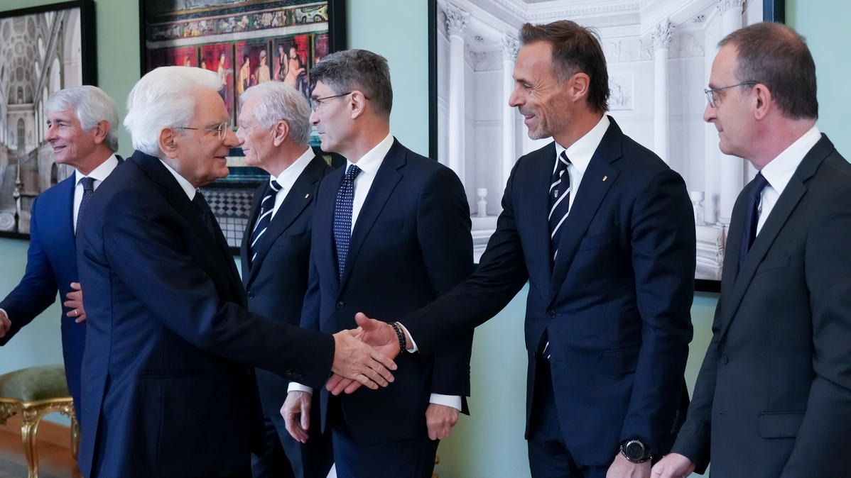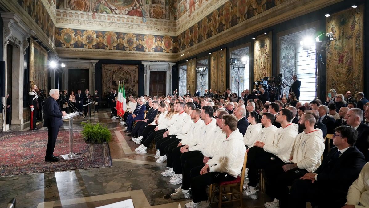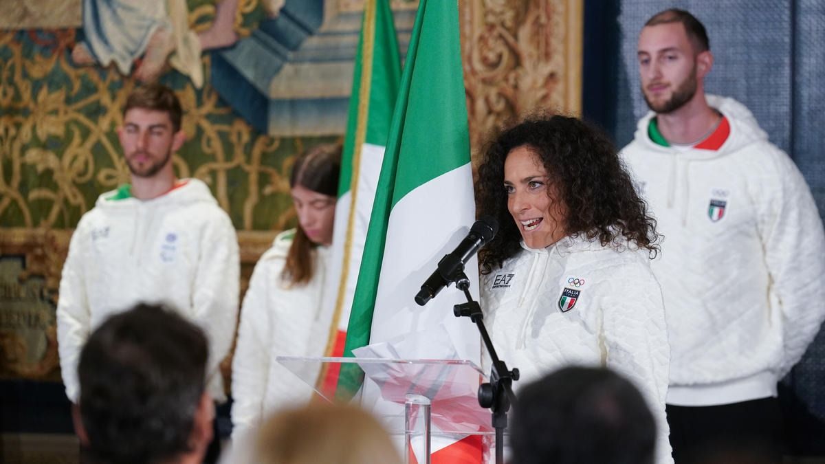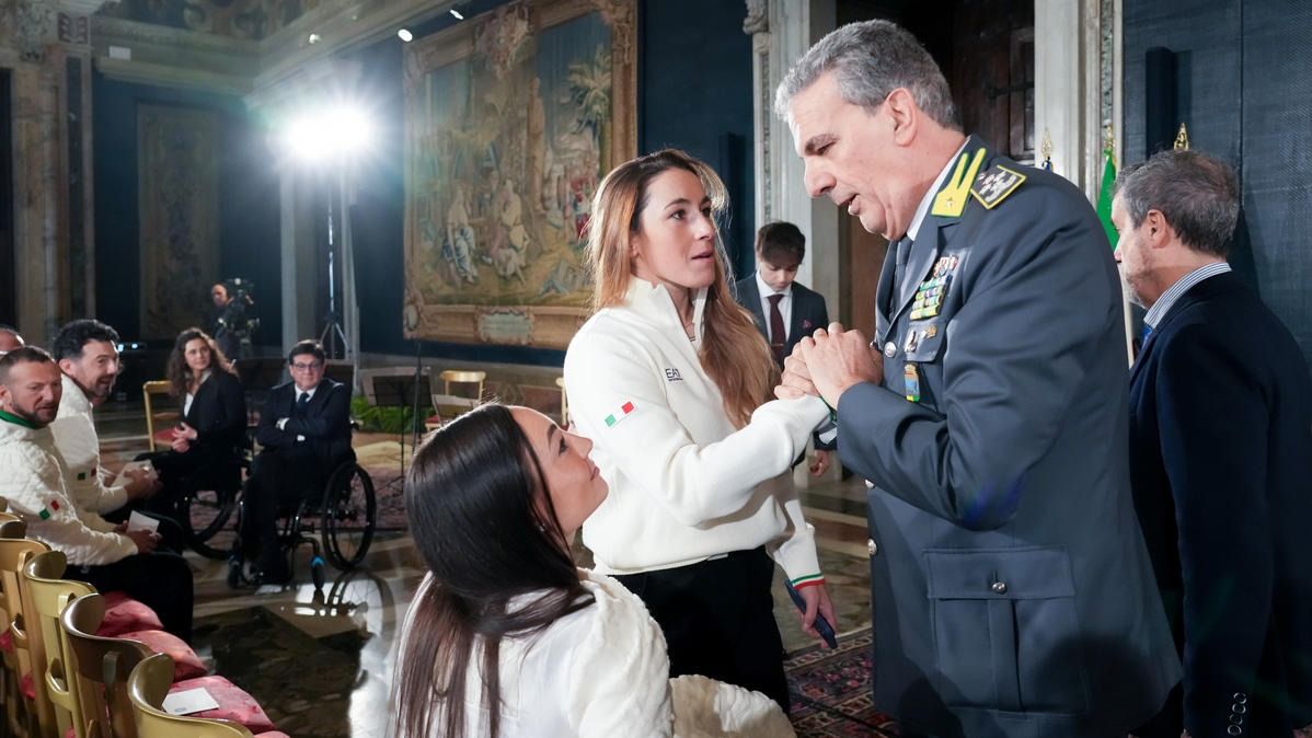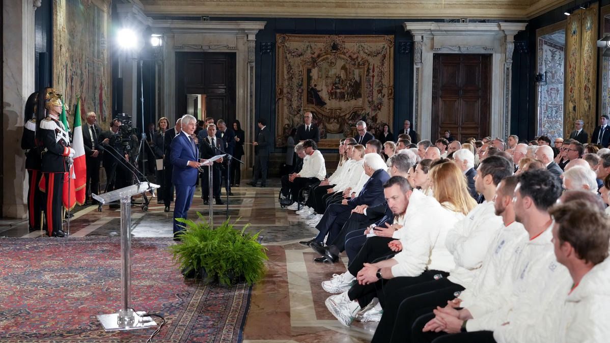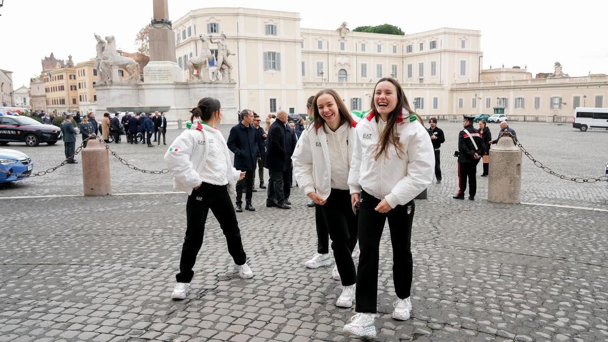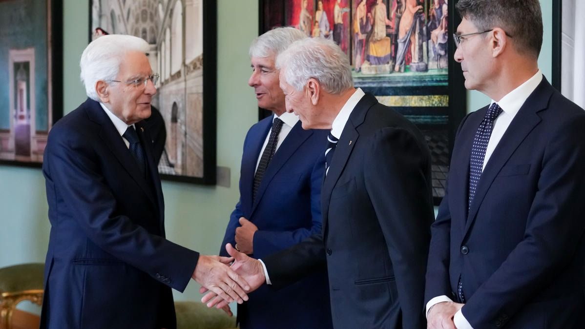 Il Presidente della Repubblica Mattarella consegna il tricolore ai portabandiera di Milano Cortina 2026
