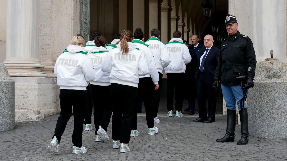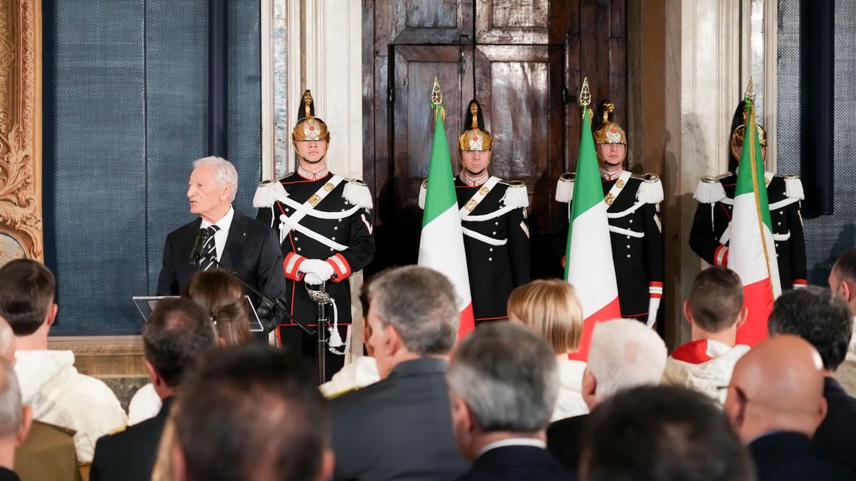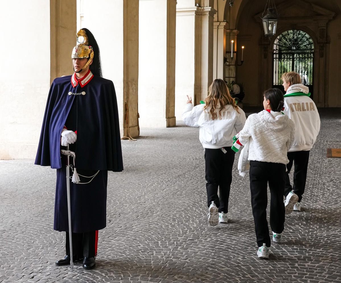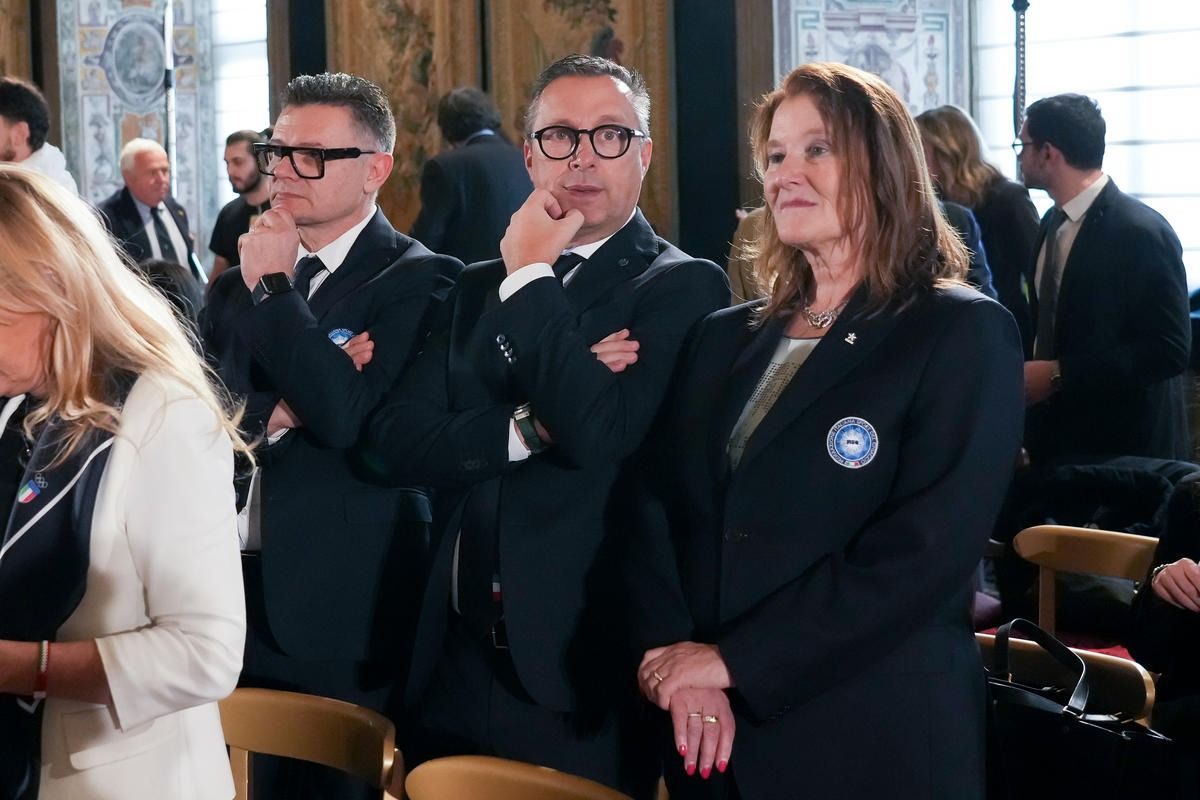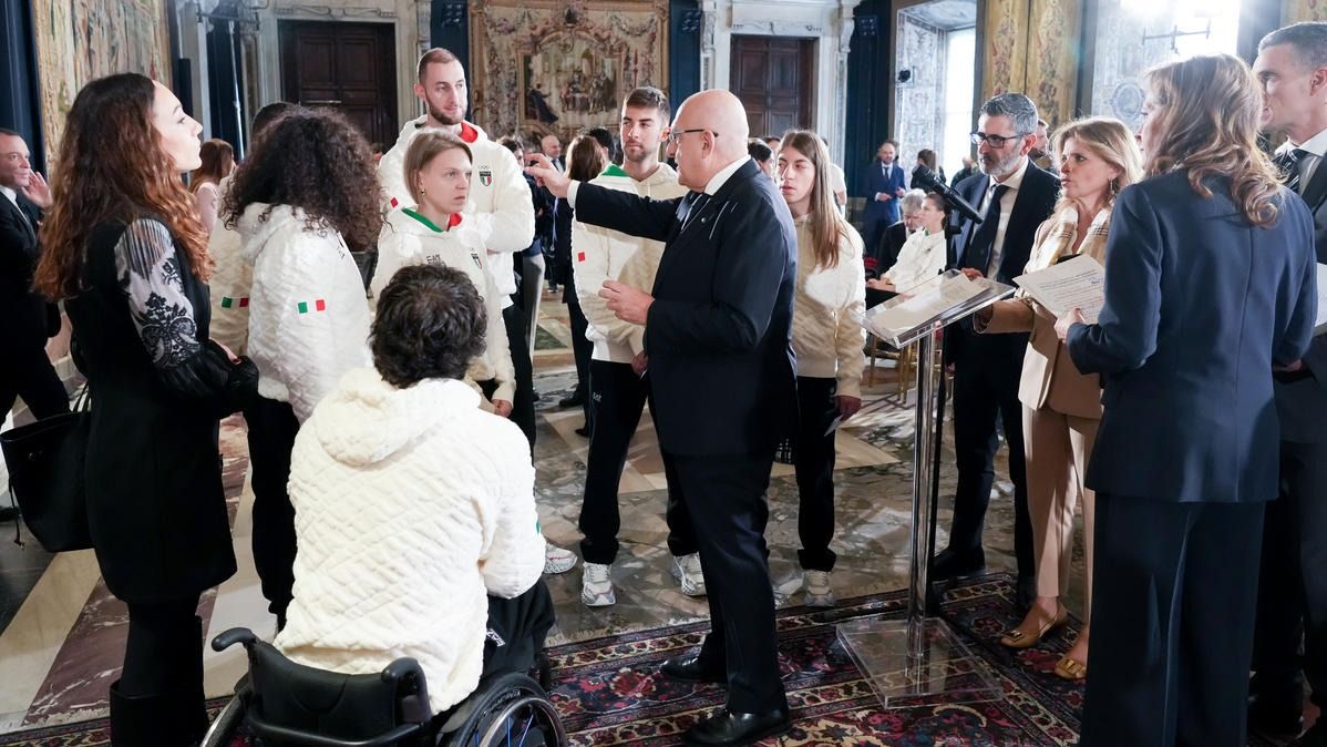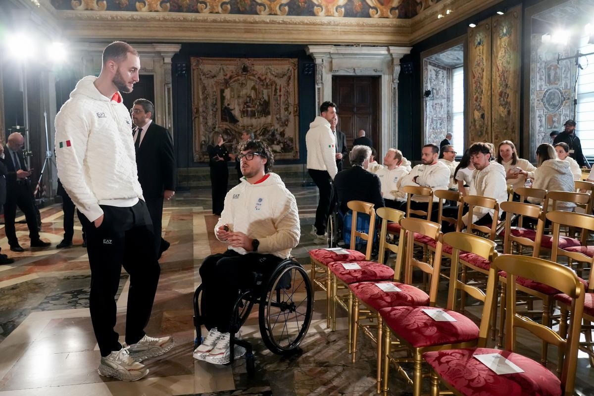 Il Presidente della Repubblica Mattarella consegna il tricolore ai portabandiera di Milano Cortina 2026