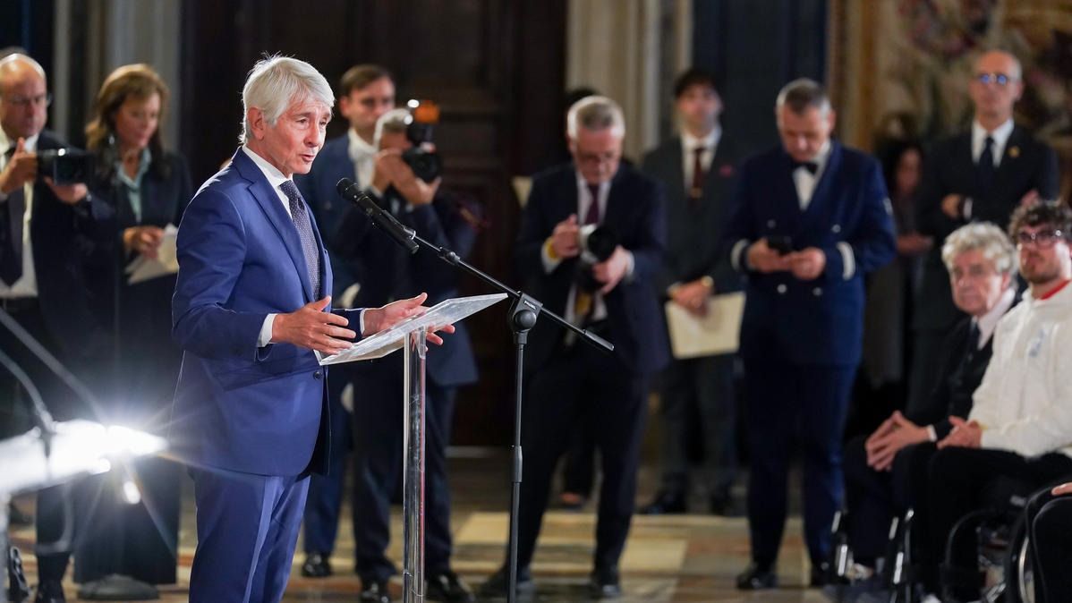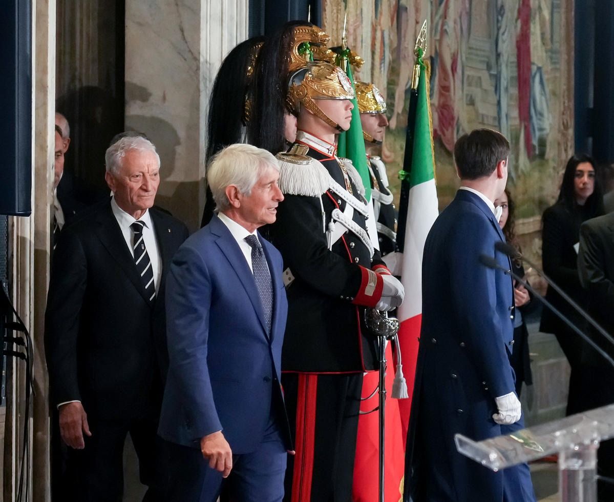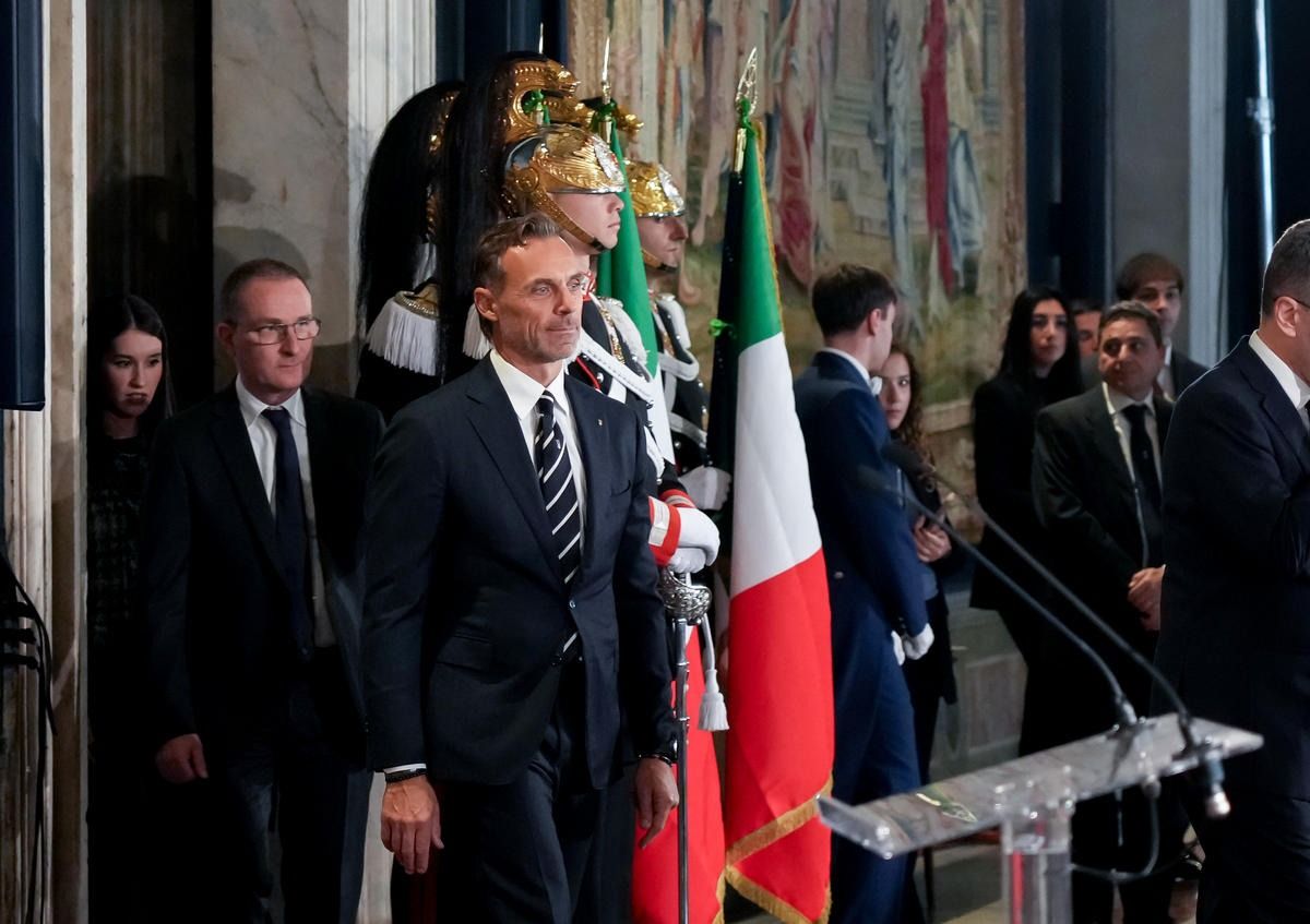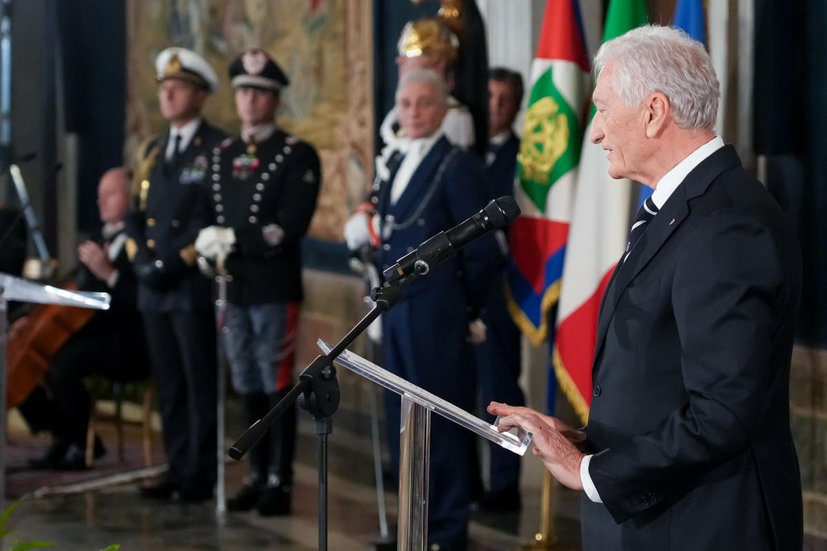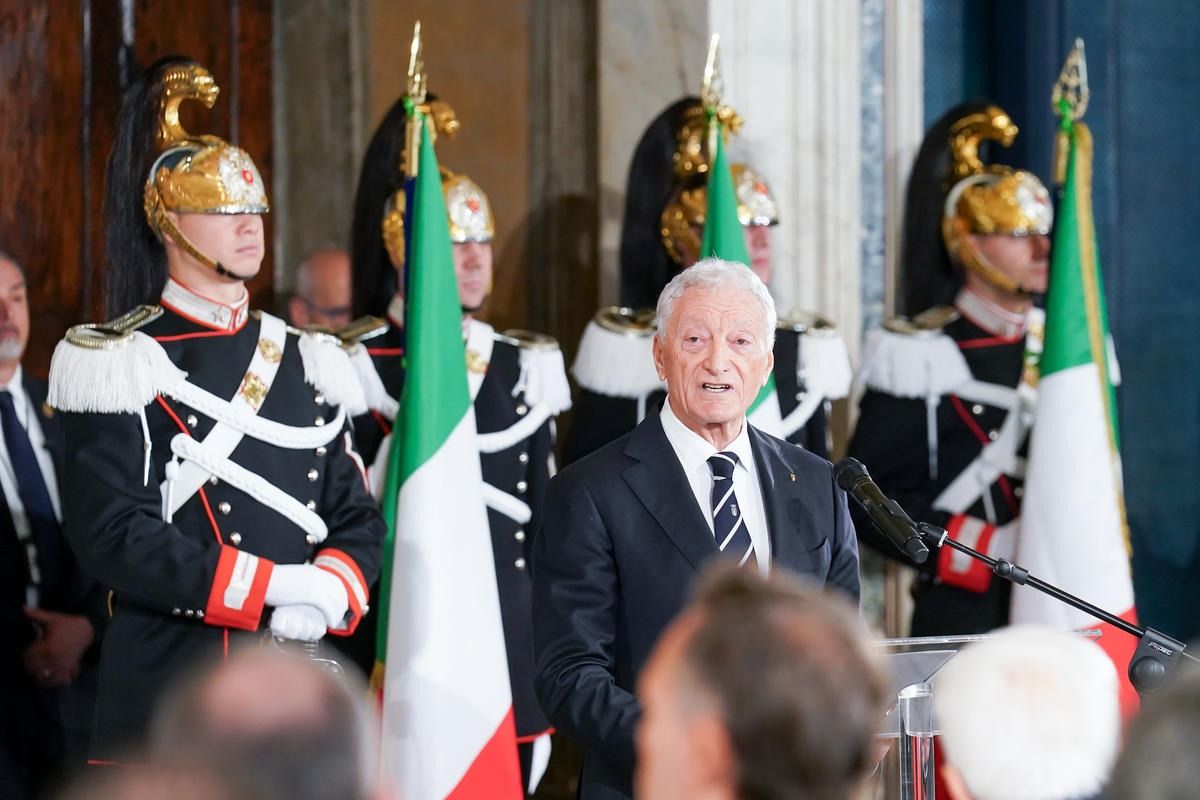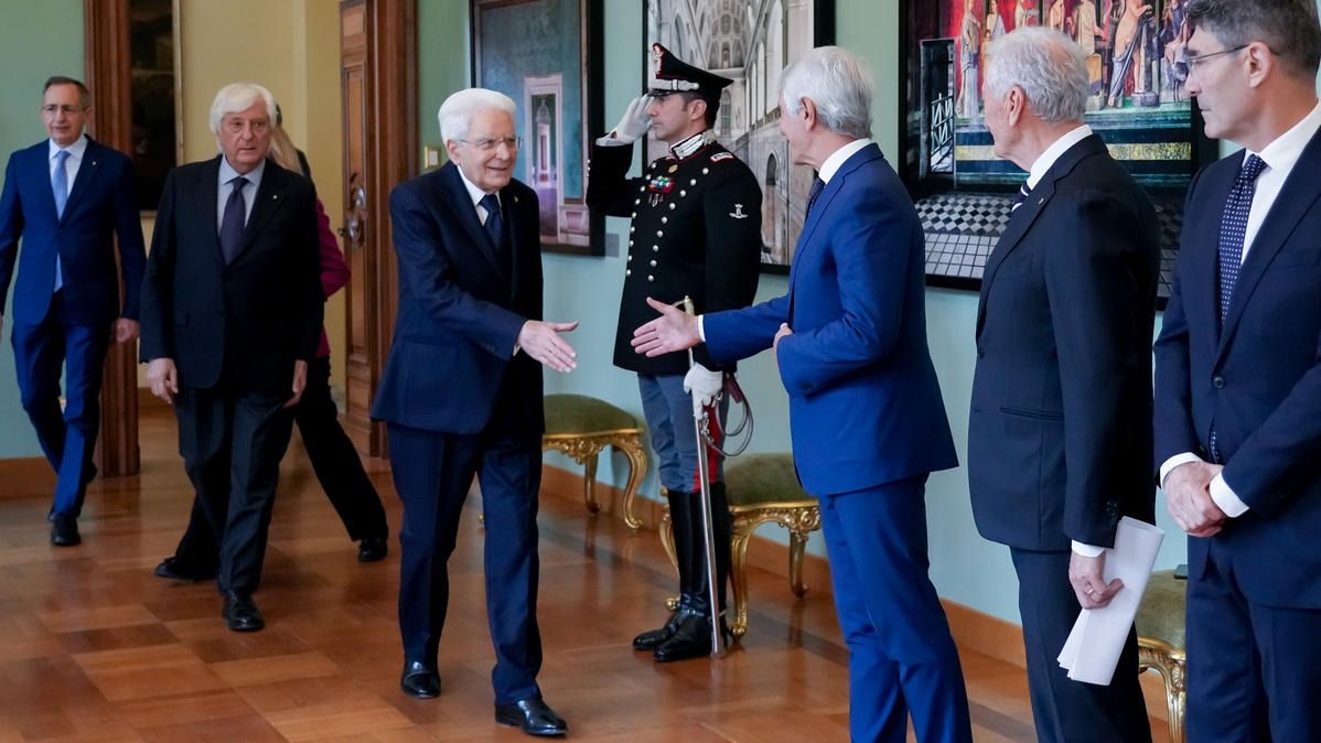 Il Presidente della Repubblica Mattarella consegna il tricolore ai portabandiera di Milano Cortina 2026