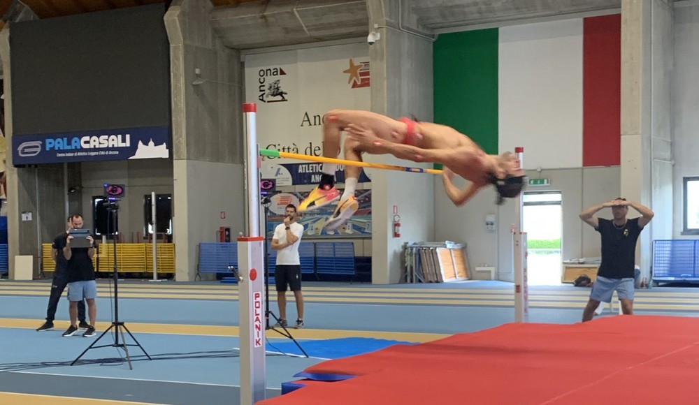 Salto in alto: Gianmarco Tamberi al PalaCasali di Ancona per una sessione di test biomeccanici